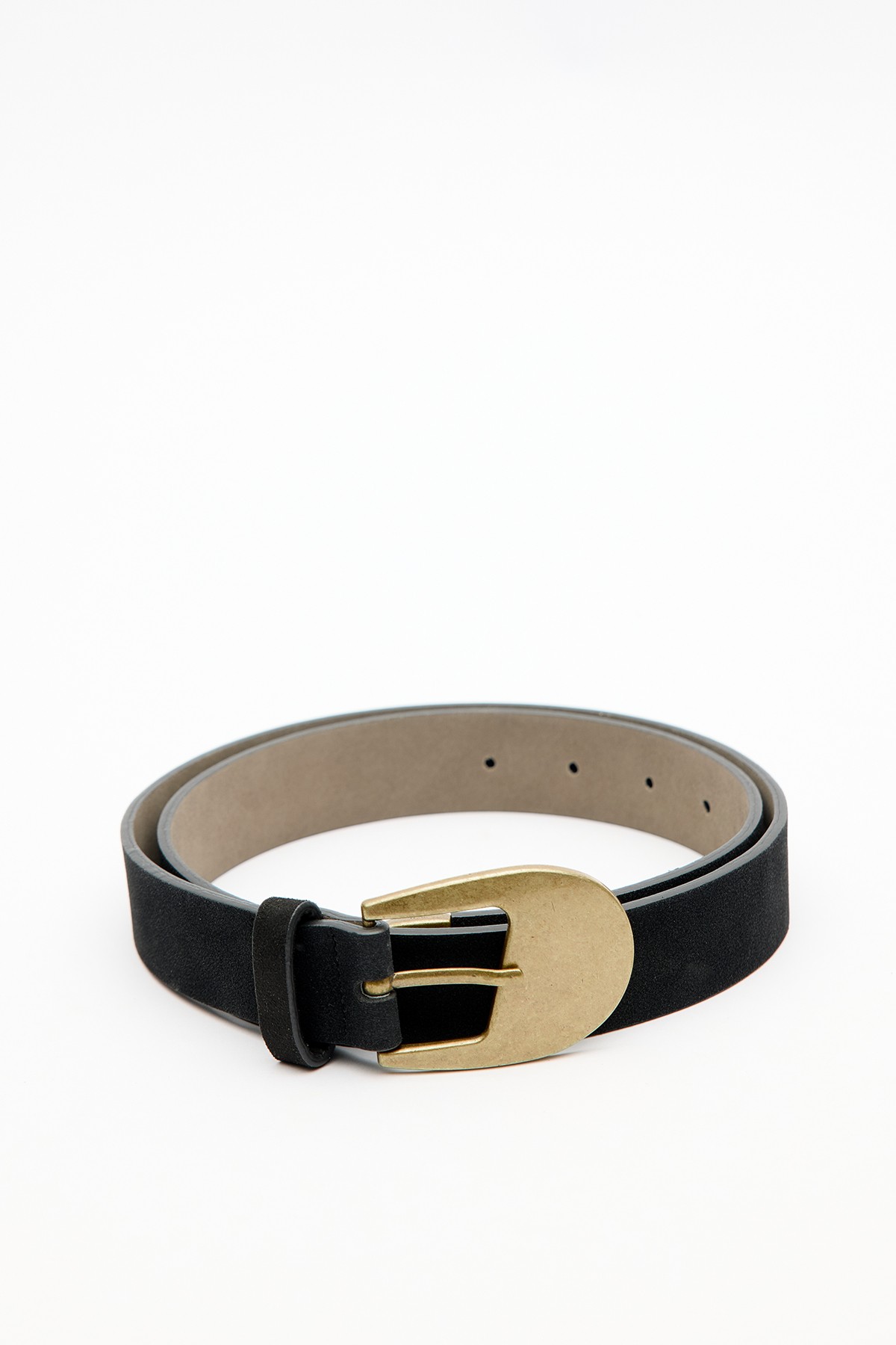 Antique gold-plated decorative buckle belt, adjustable, faux suede leather.