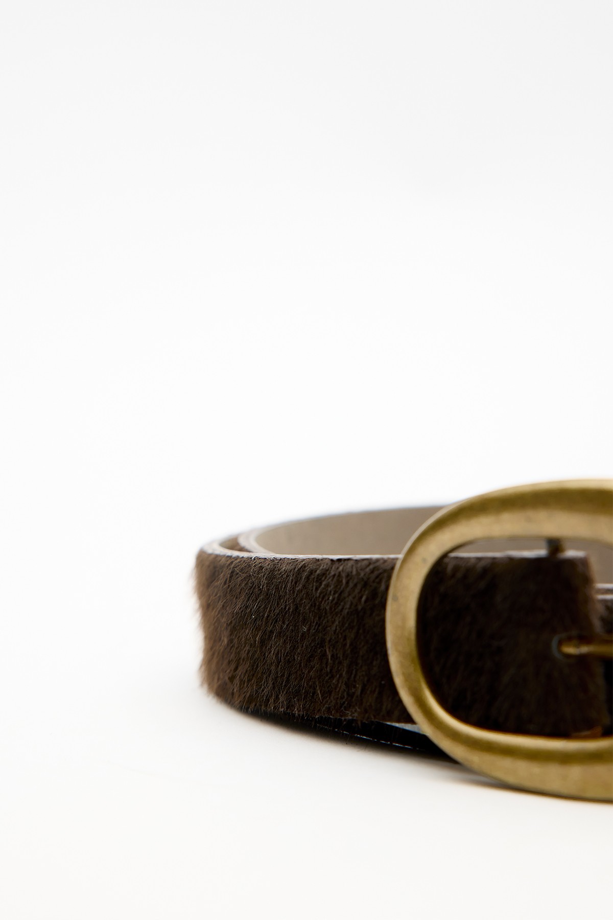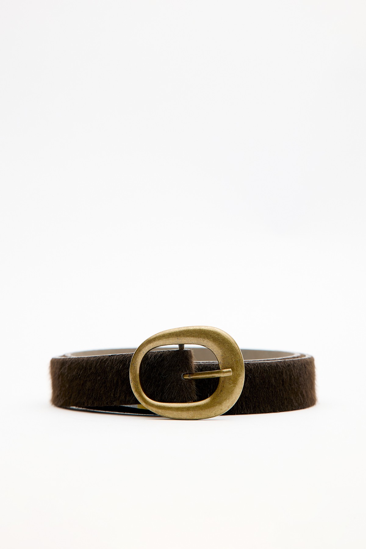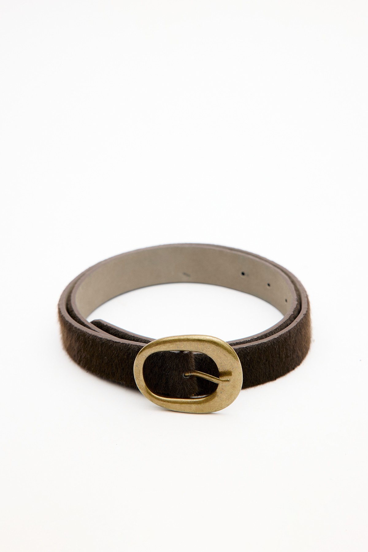 Oval antique-plated buckle belt, faux suede leather. Main Fabric: 30% Polyurethane, 60% Polyester, 10% Polyvinyl Chloride Do not wash Do not bleach Do not iron Do not dry clean Do not tumble dry.