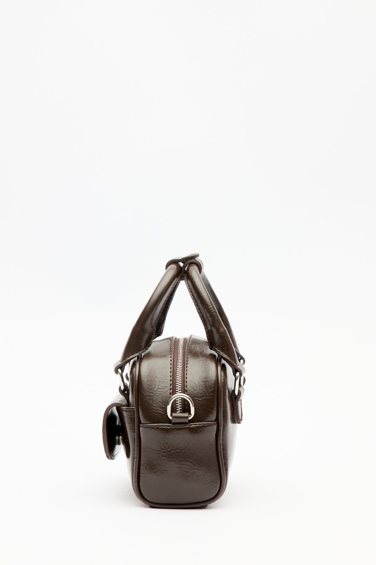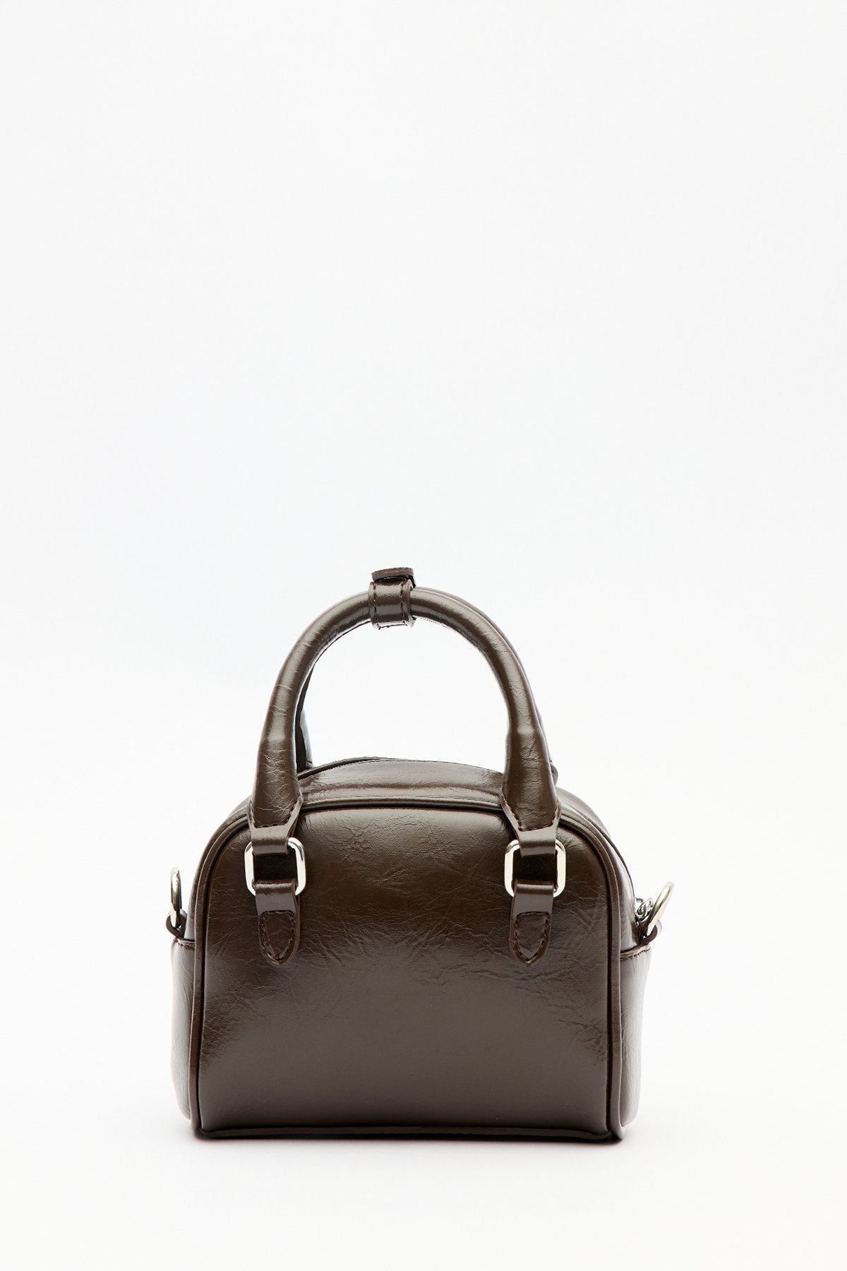 Small size, pocket detail, long and short straps, zip closure, faux leather.