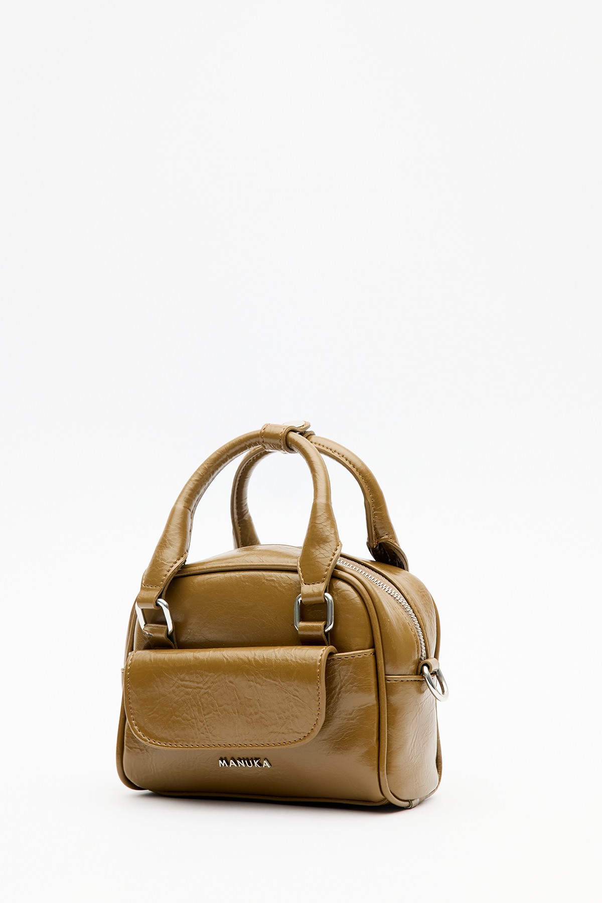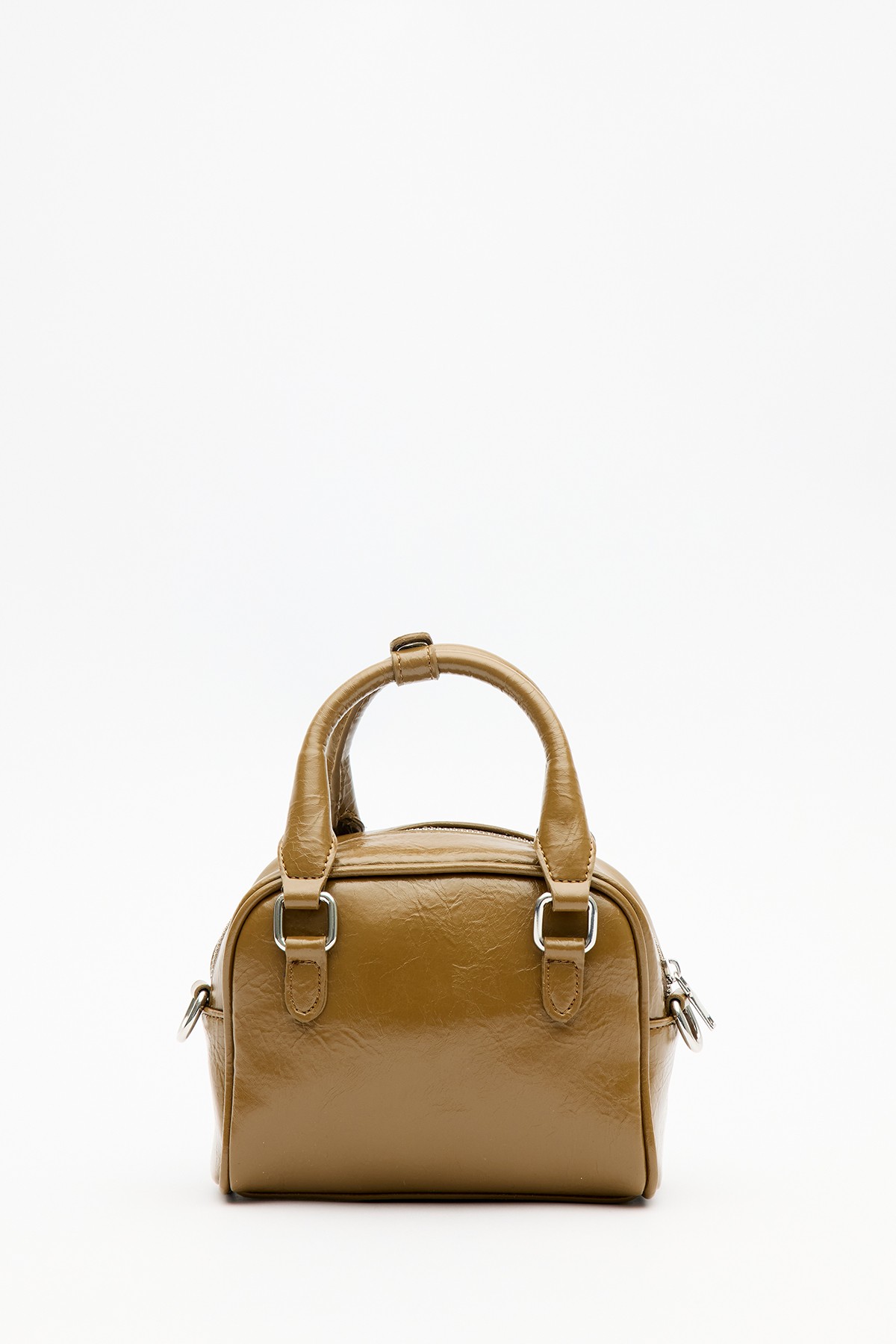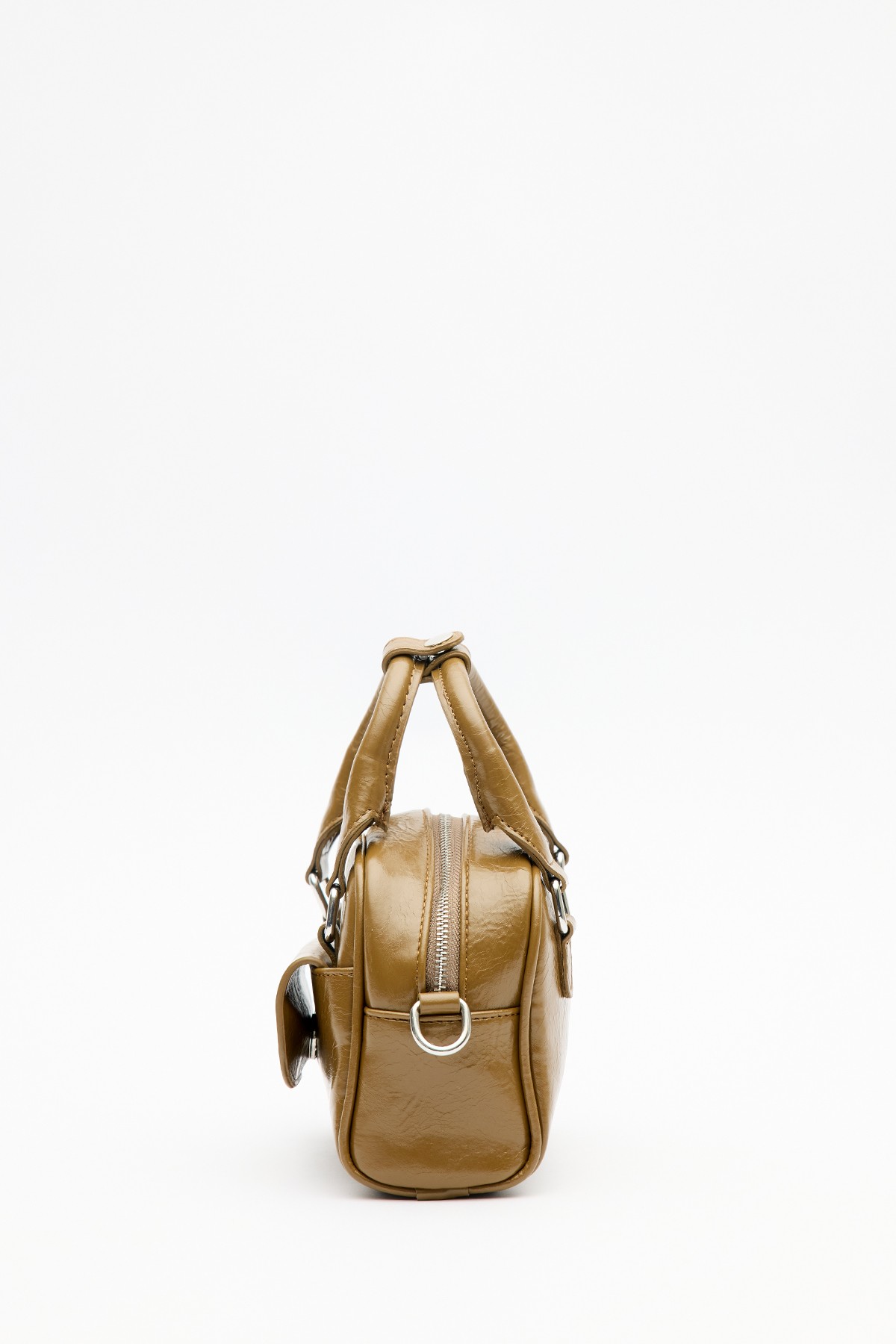 Small size, pocket detail, long and short straps, zip closure, faux leather.