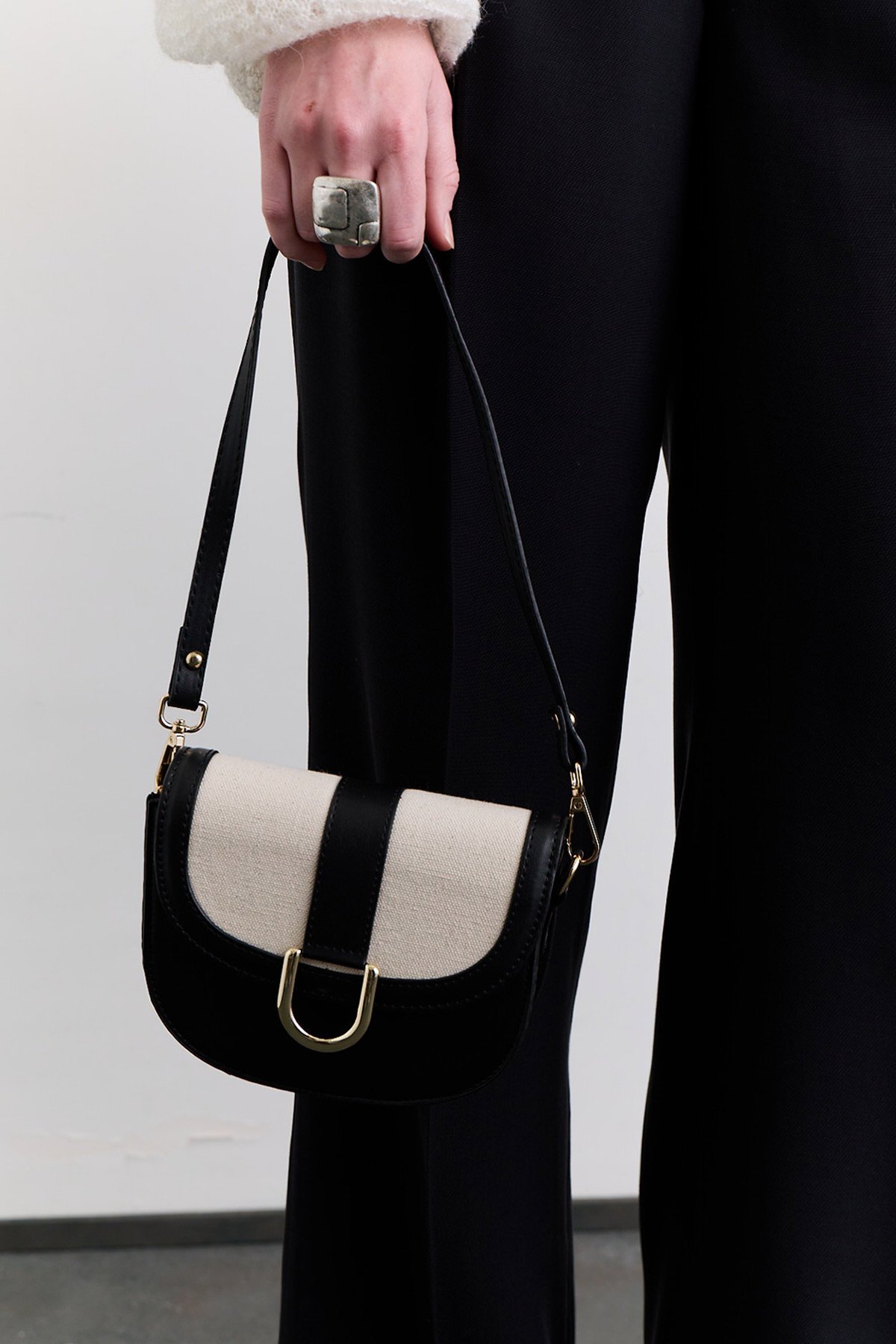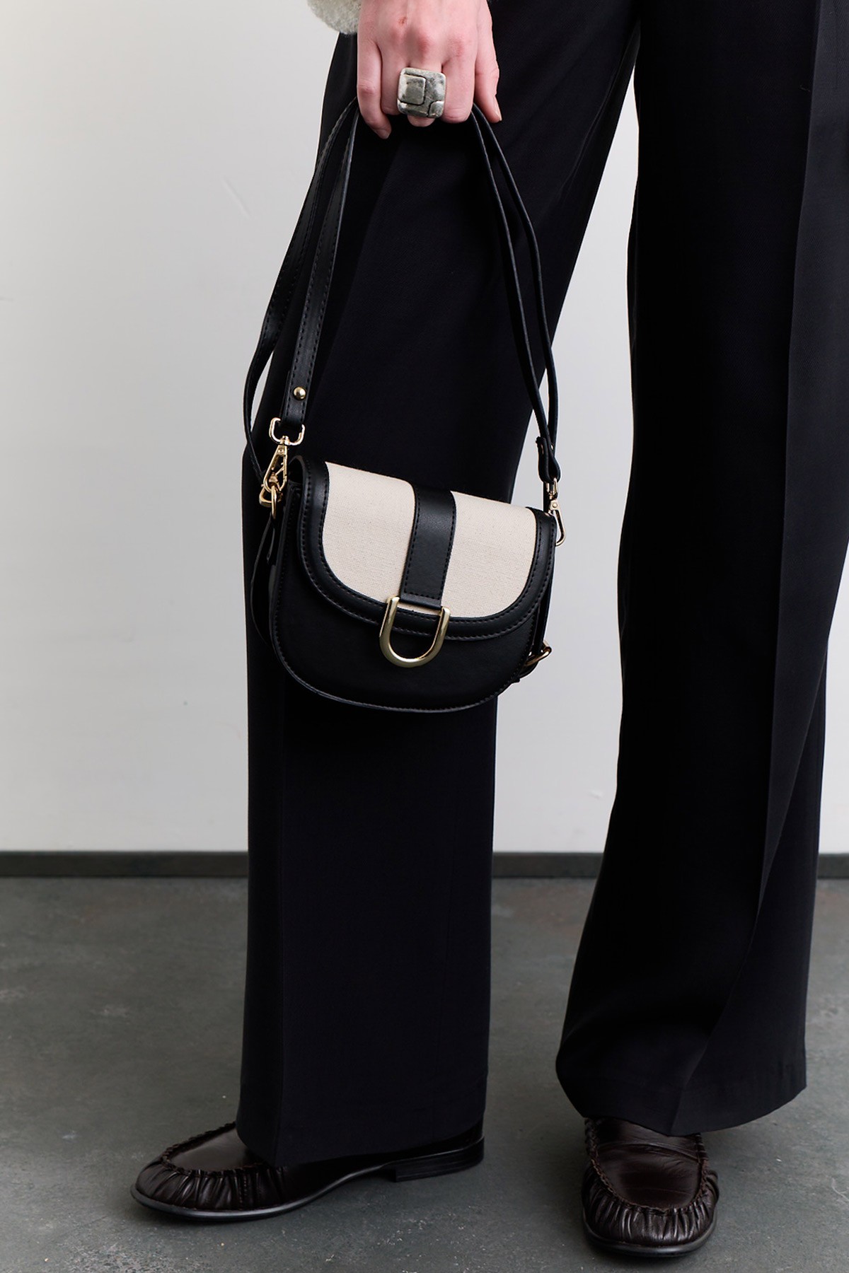İki farklı boy askılı, ayarlanabilir omuz askılı, kanvas kumaş garnili suni deri, kanvas çıtçıt kapamalı, içi astarlı ve küçük cep detaylı, kapağı metal aksesuar detaylı, arkası cep detaylı