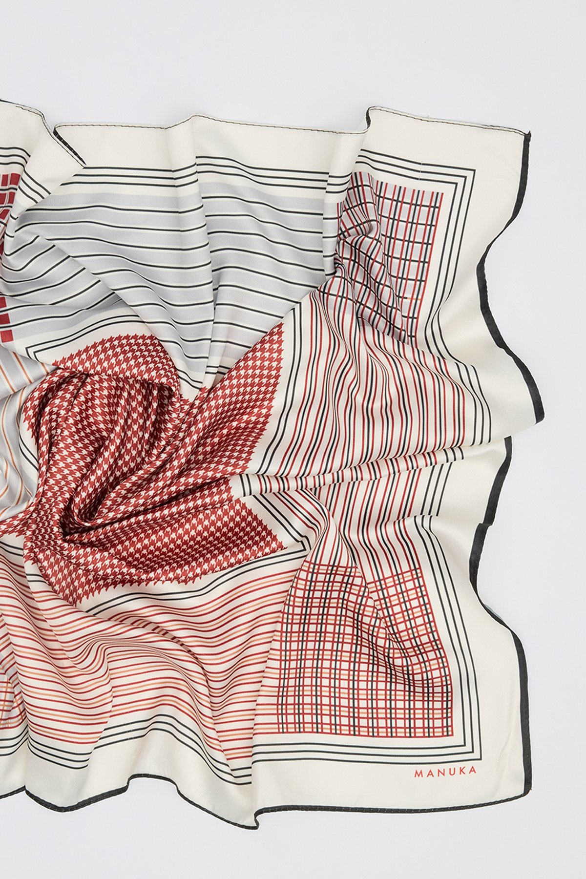 PATTERNED MEDIUM SATIN SCARF CLASSIC BURGUNDY