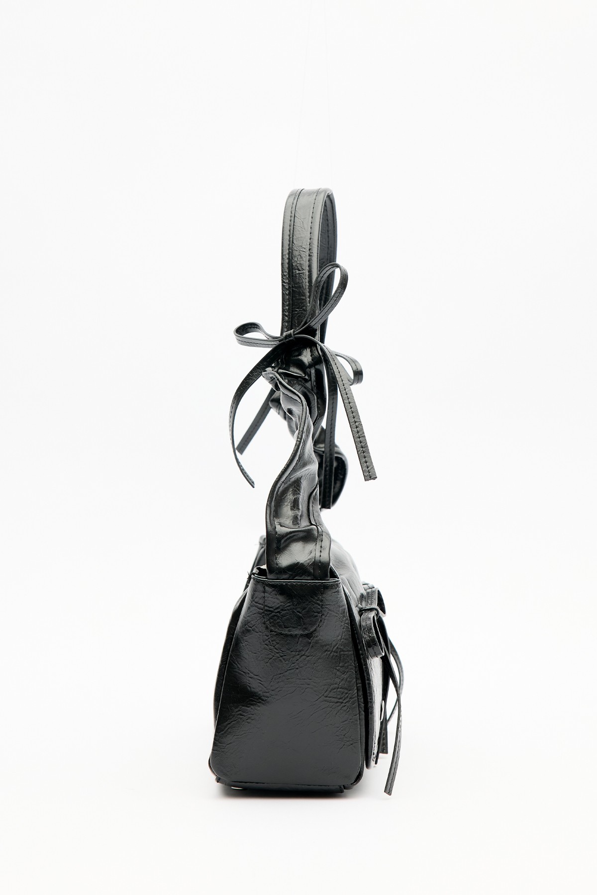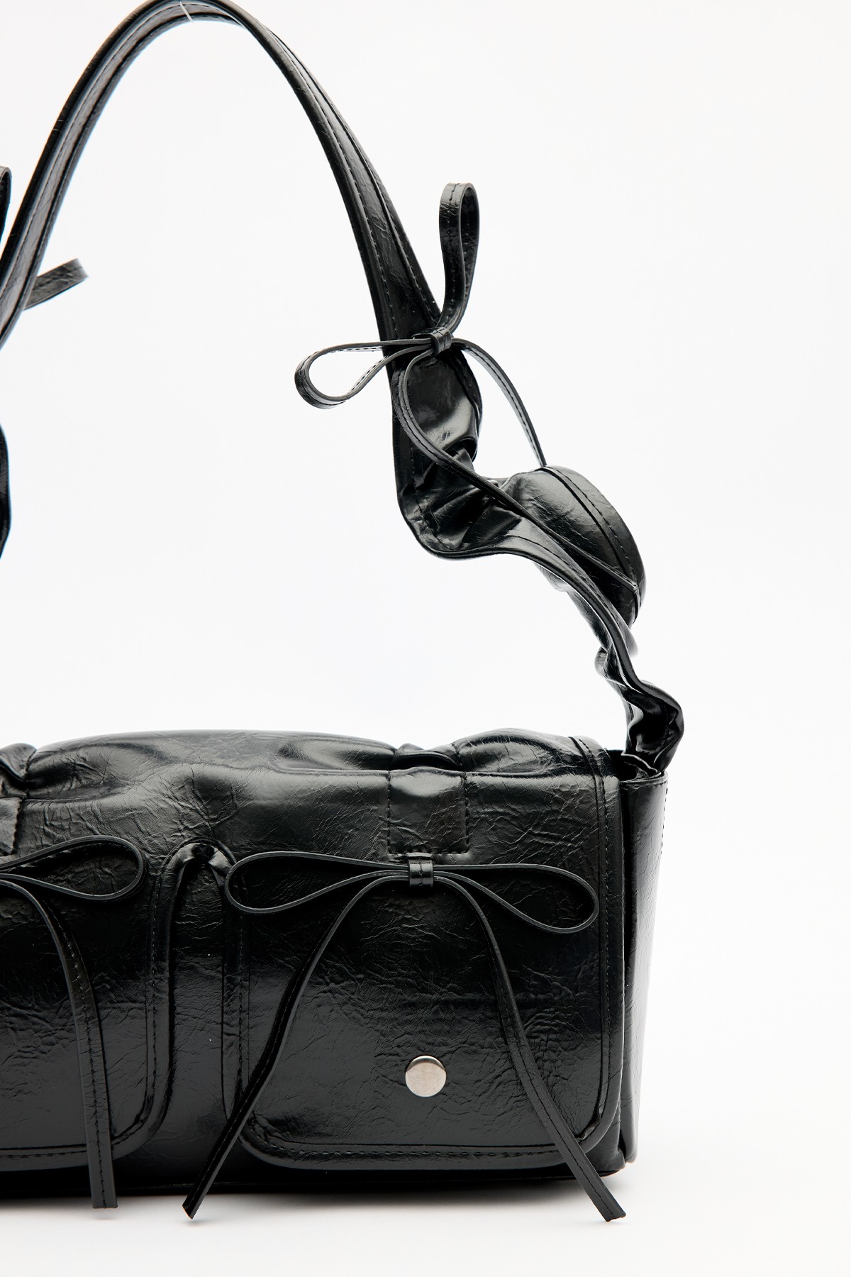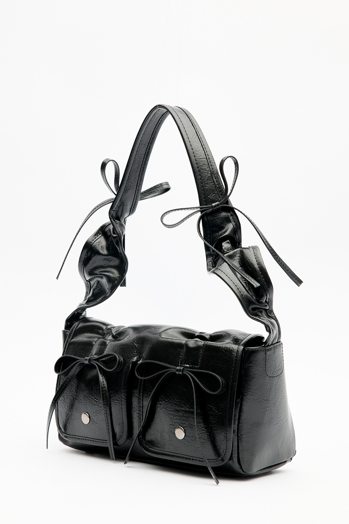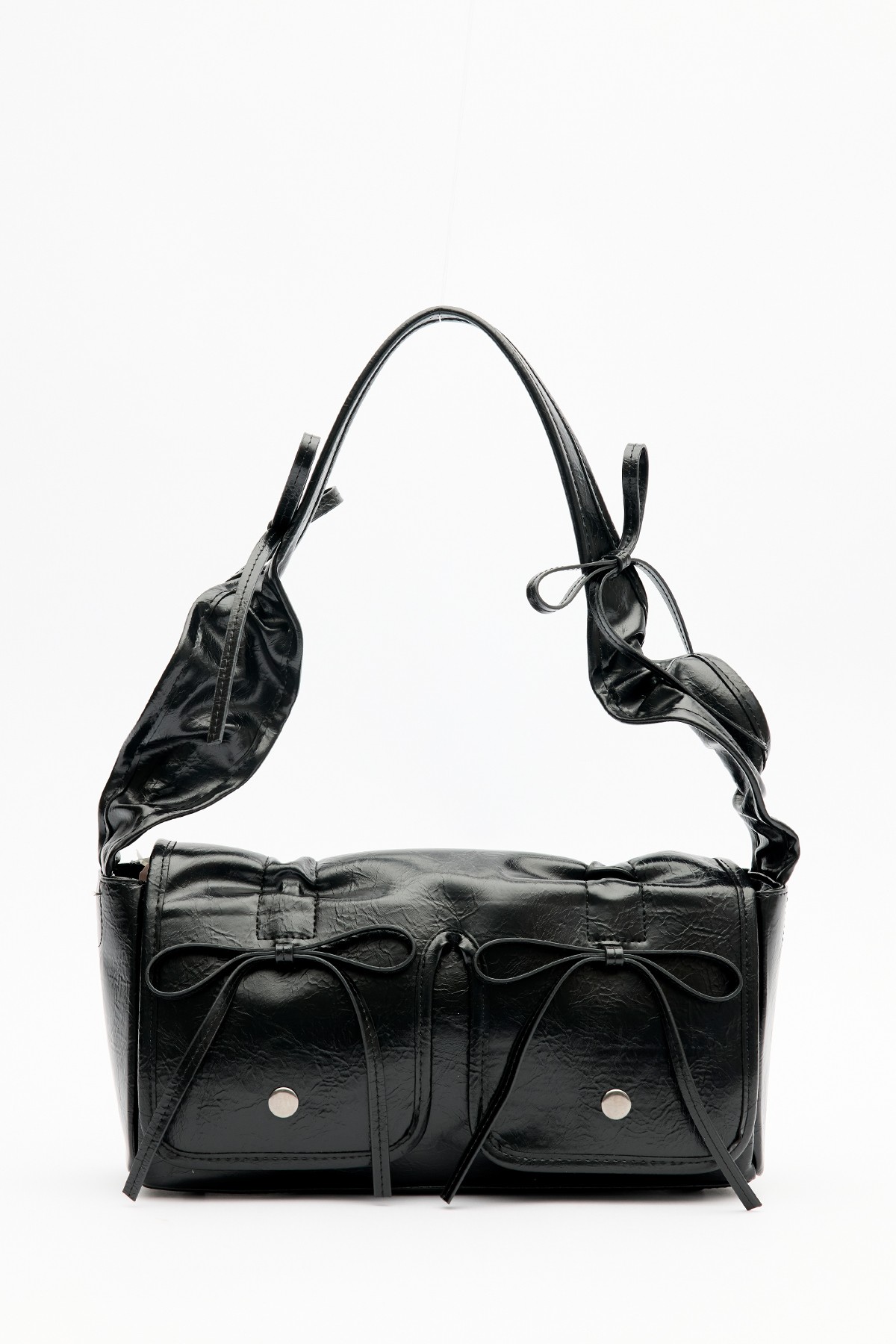 Medium size, bow detail bag, inside pocket detail, magnetic closure, faux leather, lined.