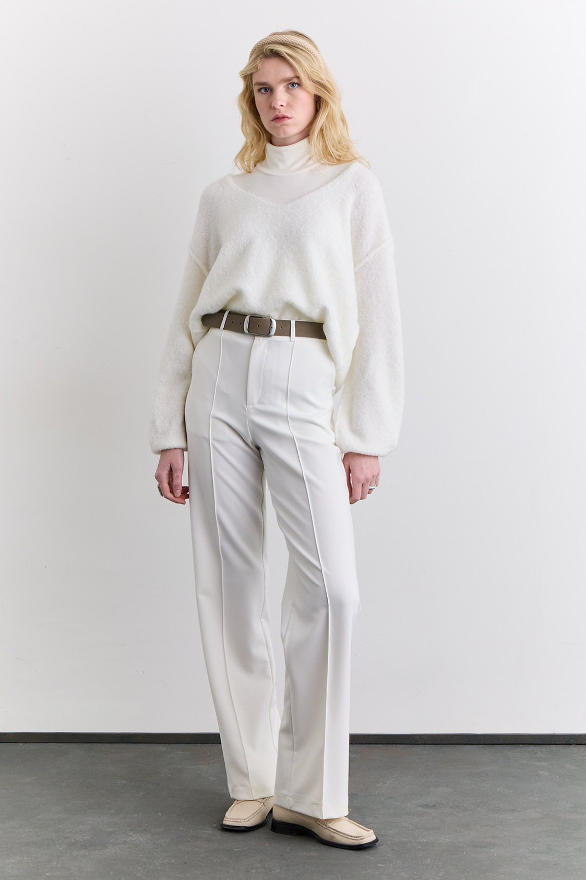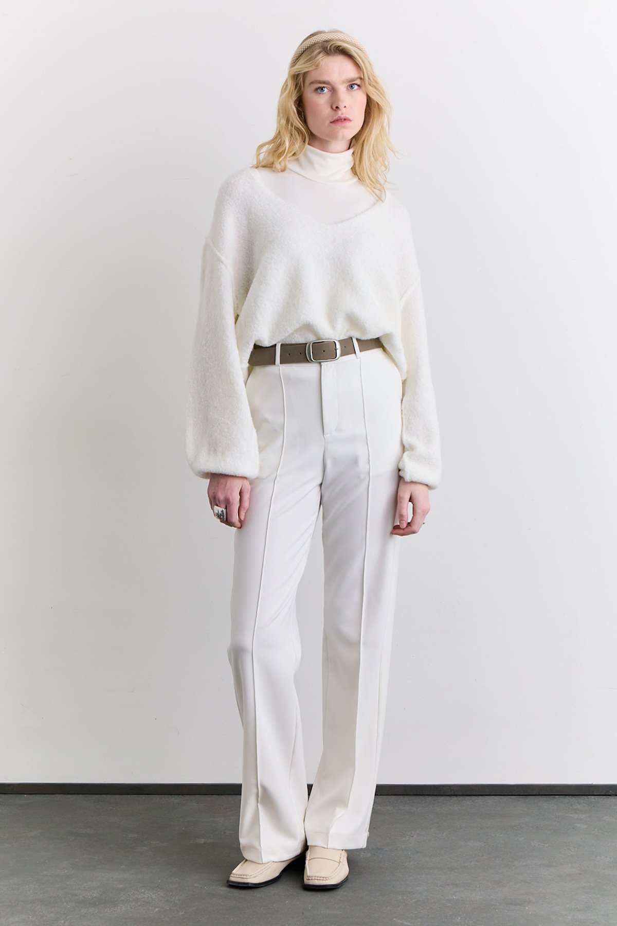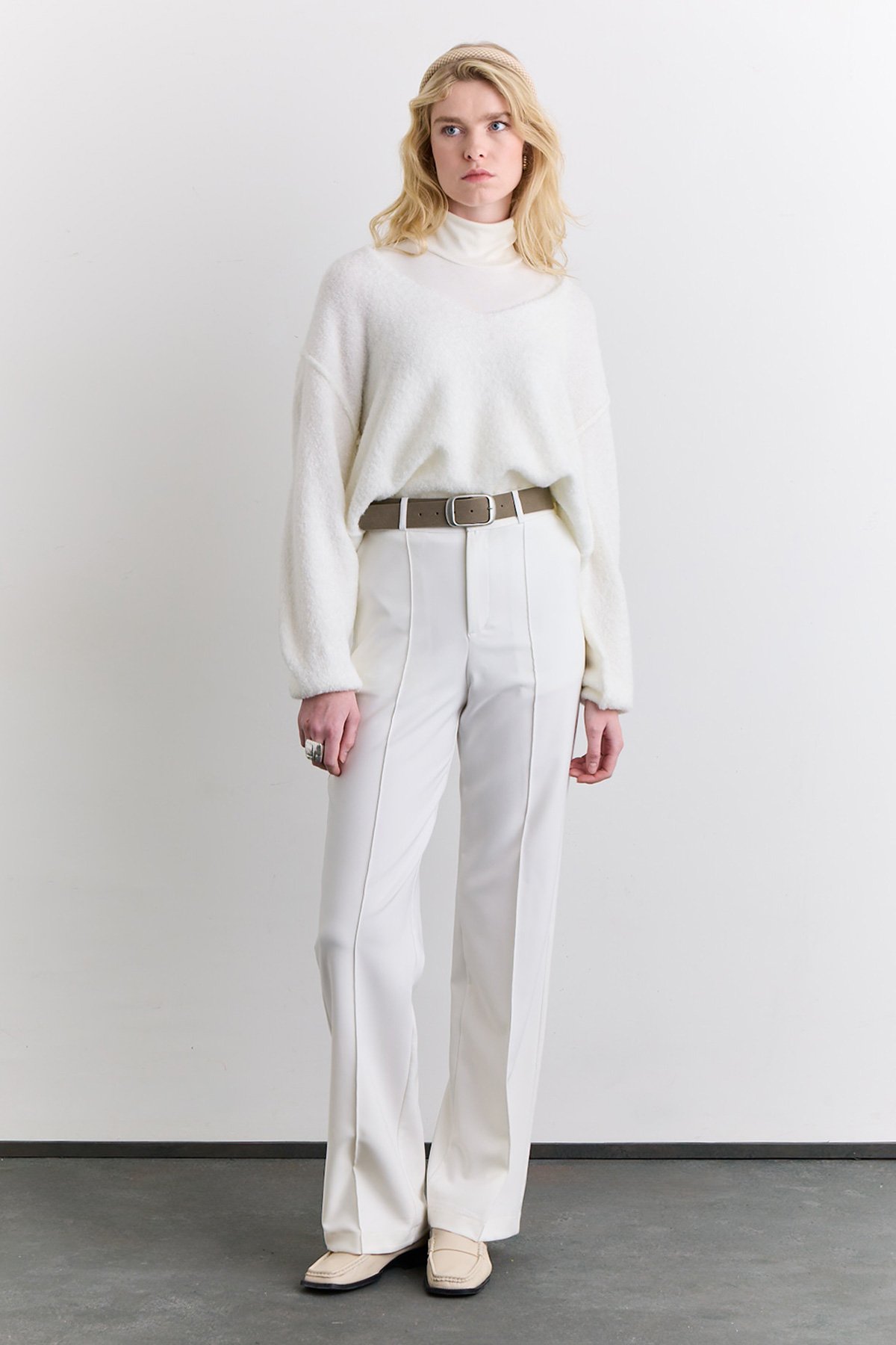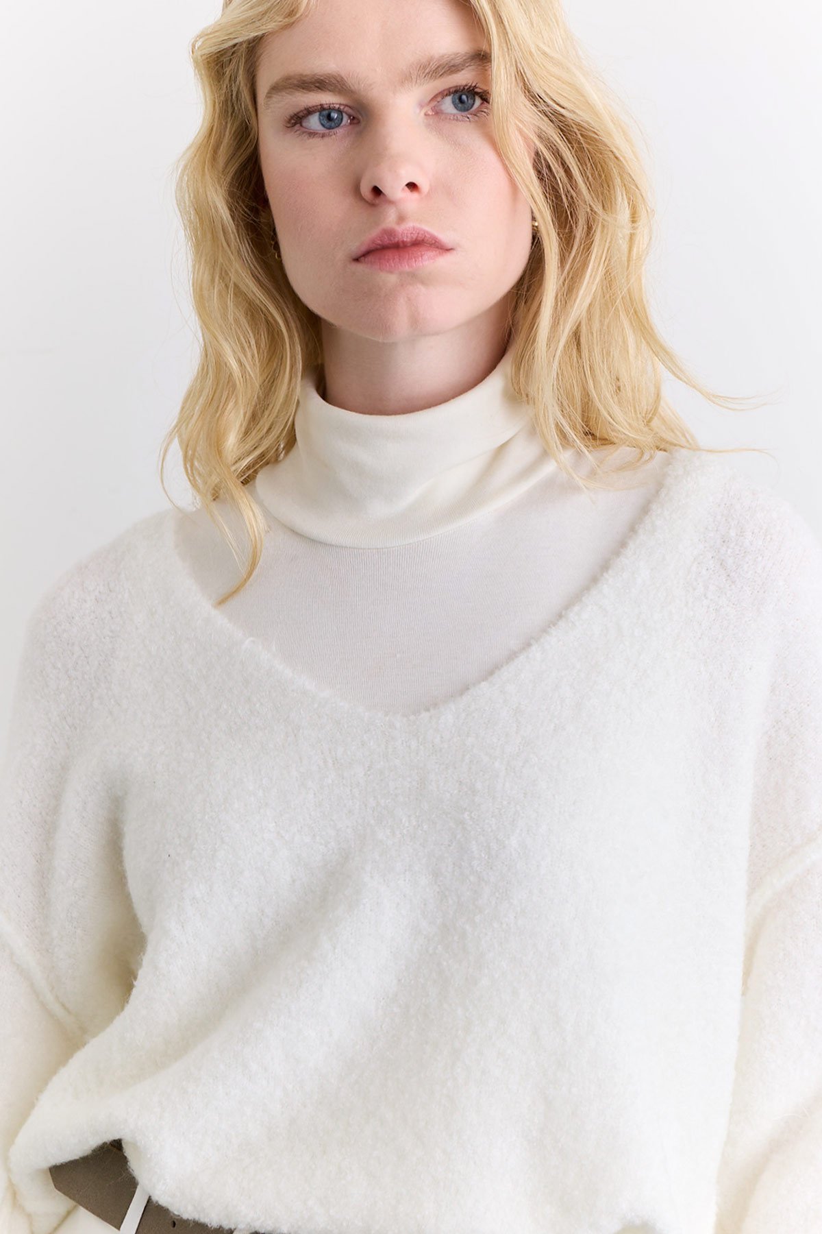 Regular fit, V neck, long sleeves, mid length, textured knit sweater. Main Fabric: (Content not specified)