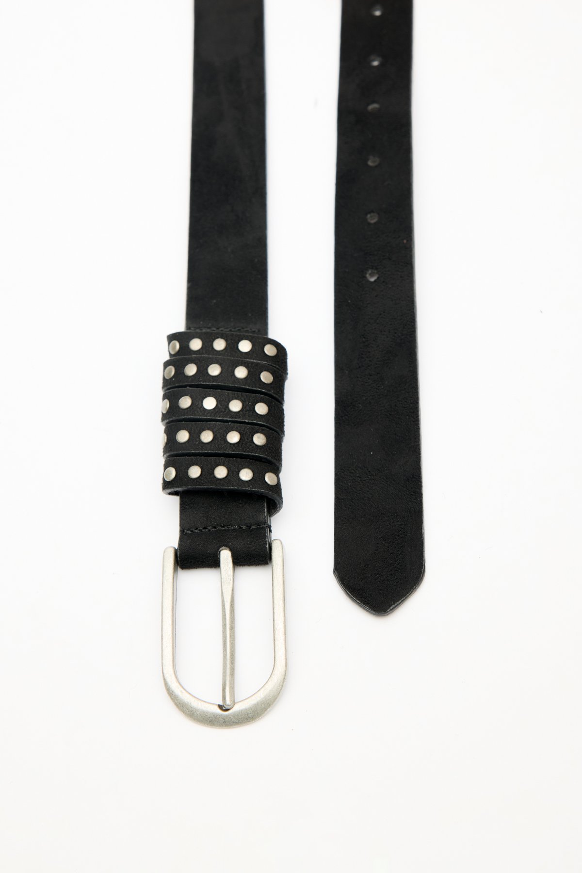 Nickel-plated, studded faux suede. Coating: 7% Polyurethane, 14% Polyester, 79% Polyvinyl Chloride Base: 30% Polyurethane, 60% Polyester, 10% Polyvinyl Chloride Do not wash Do not bleach Do not iron Do not dry clean Do not tumble dry.