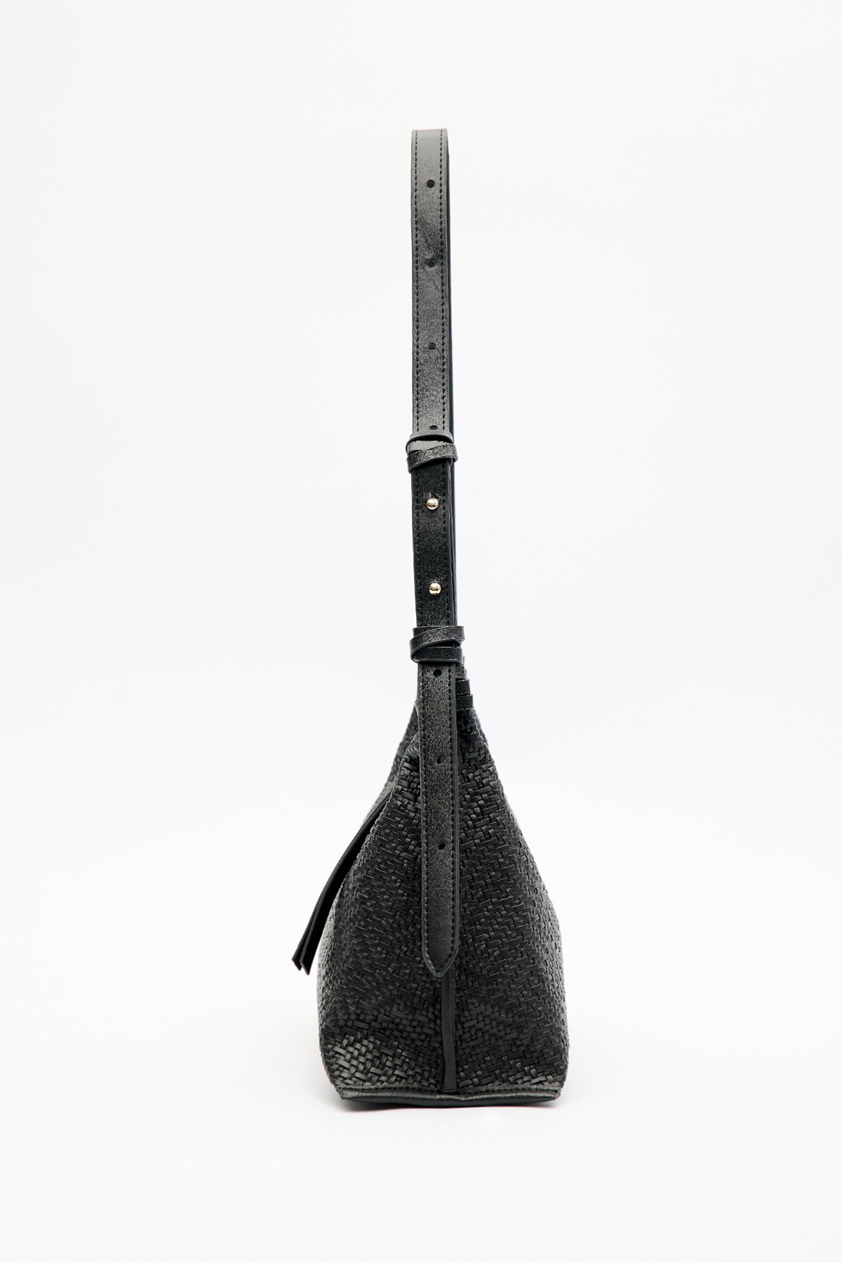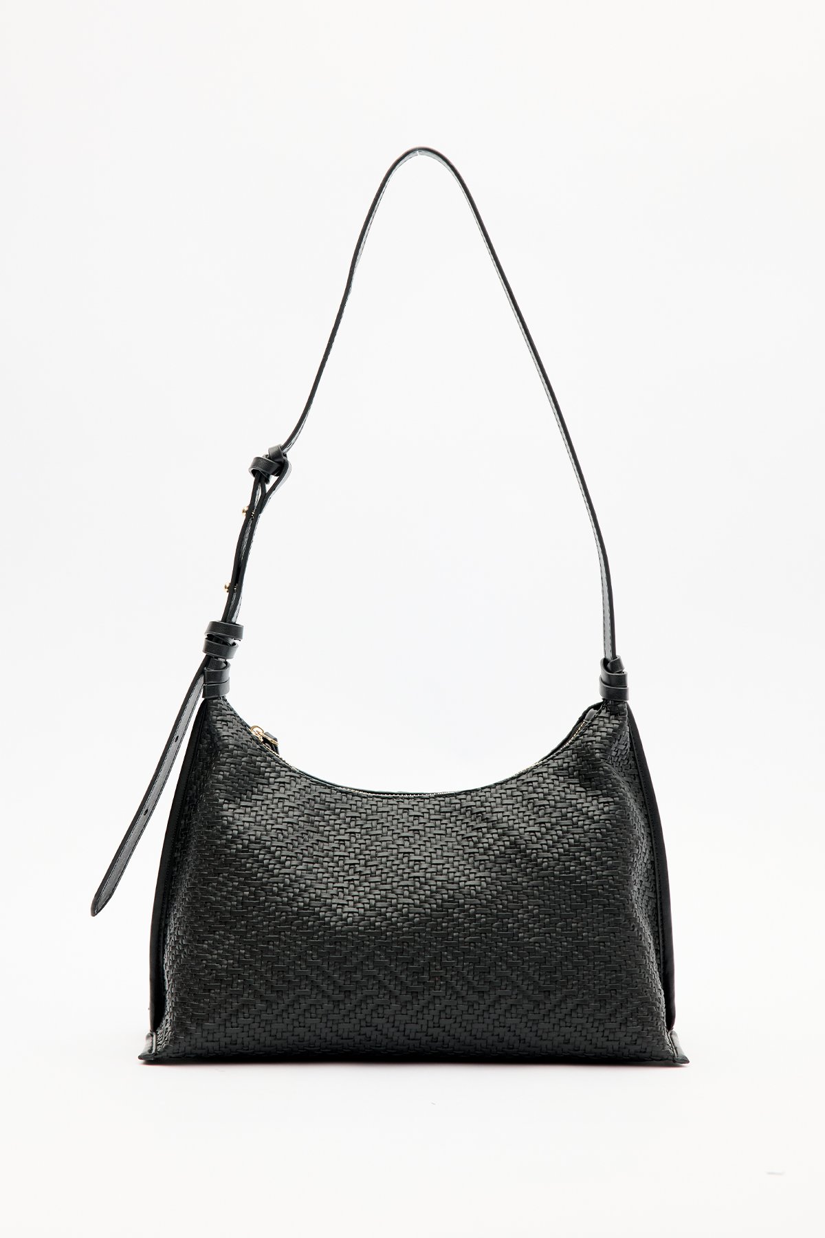 TEXTURED LEATHER SHOULDER BAG BLACK