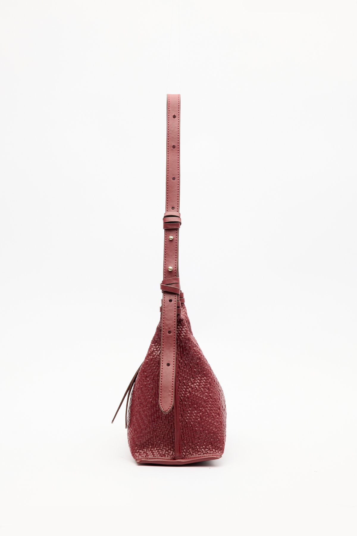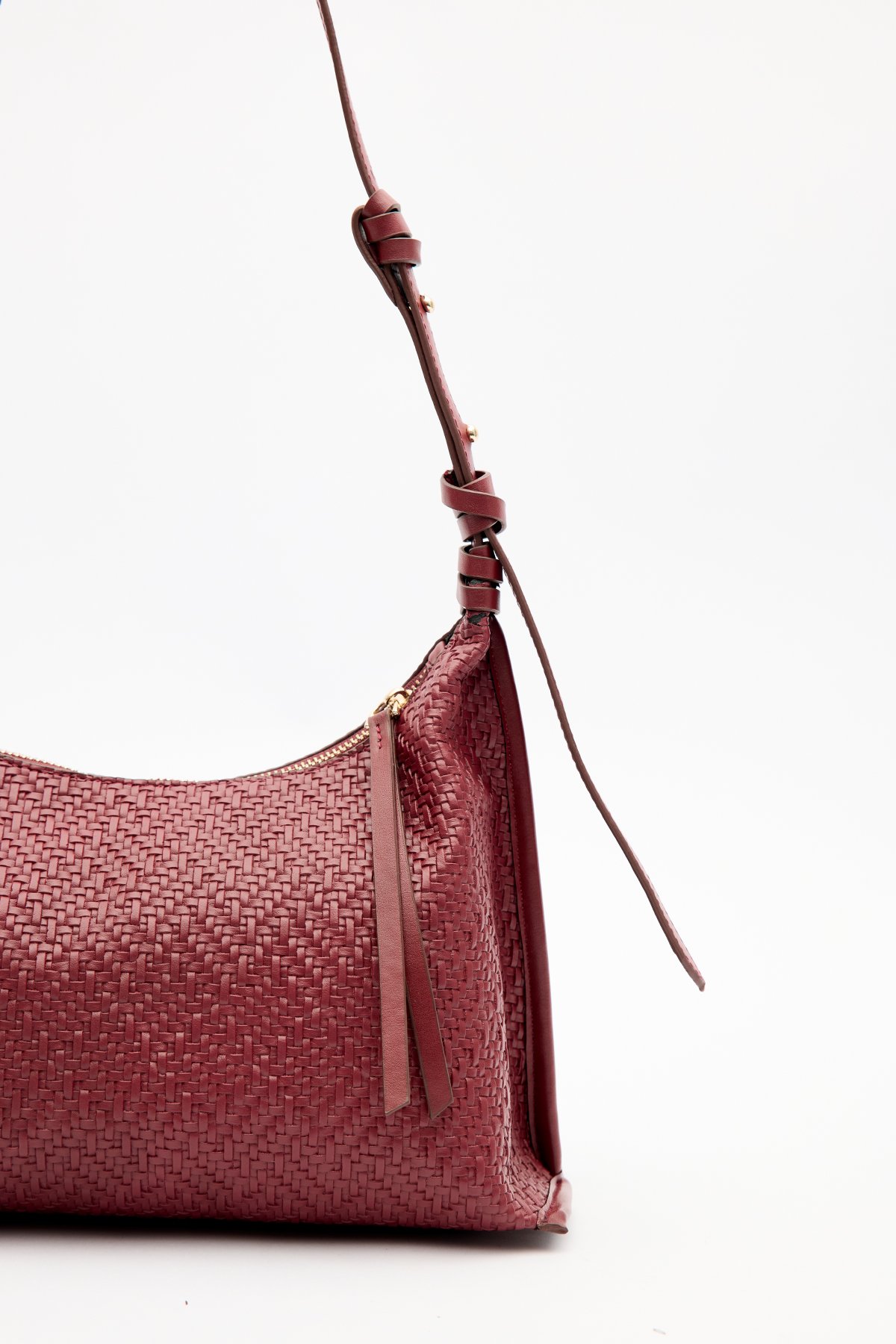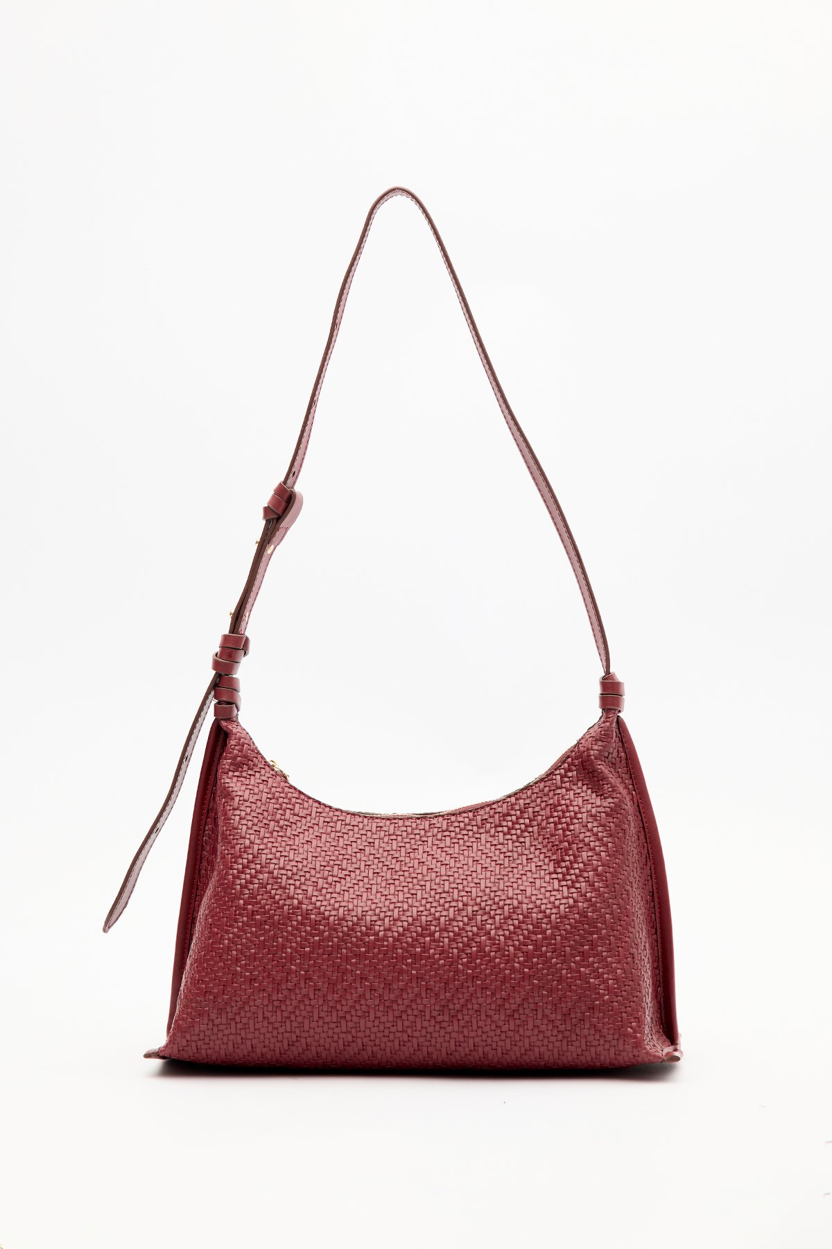 TEXTURED LEATHER SHOULDER BAG BURGUNDY