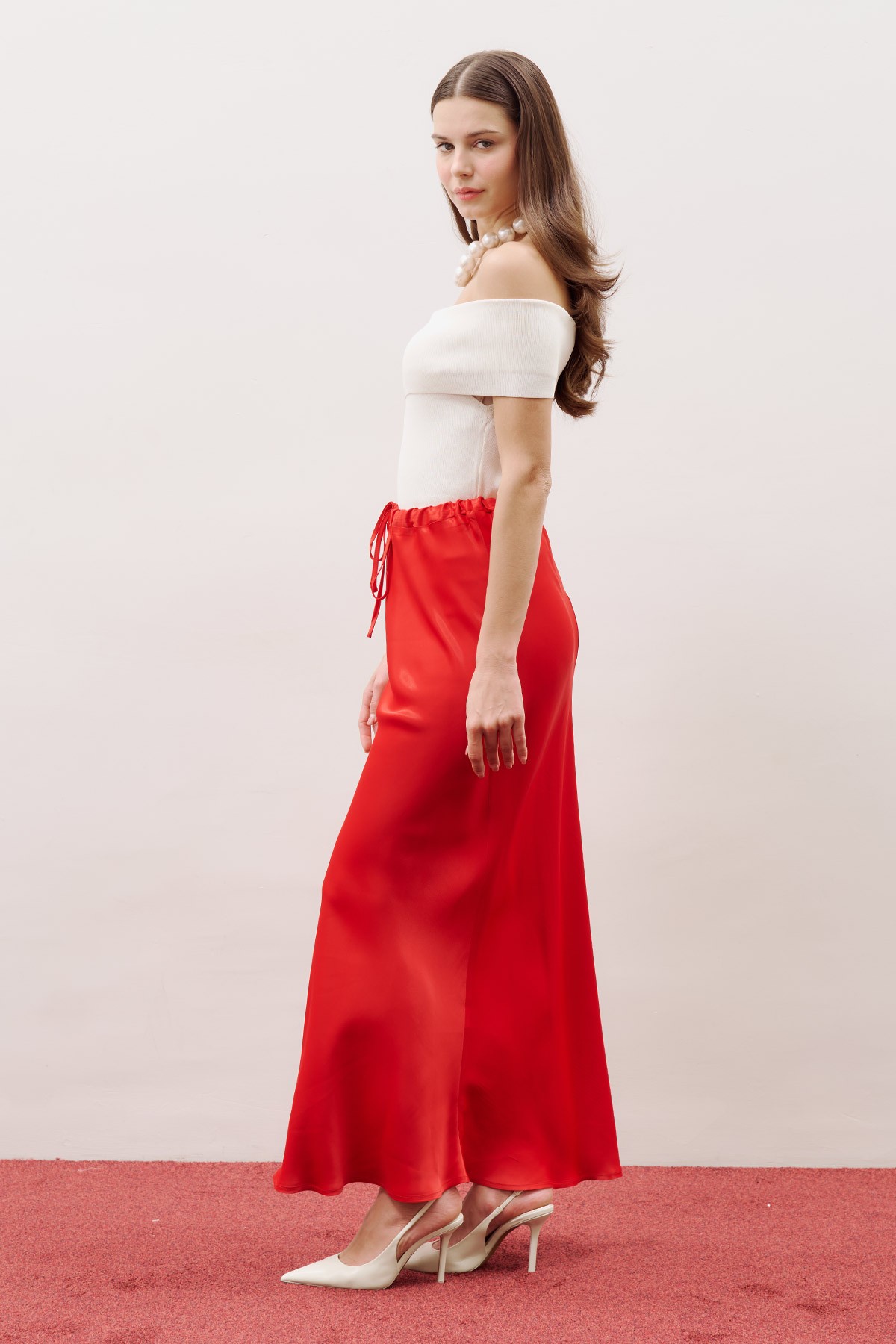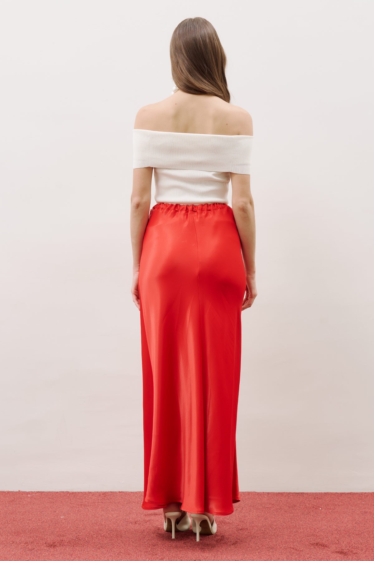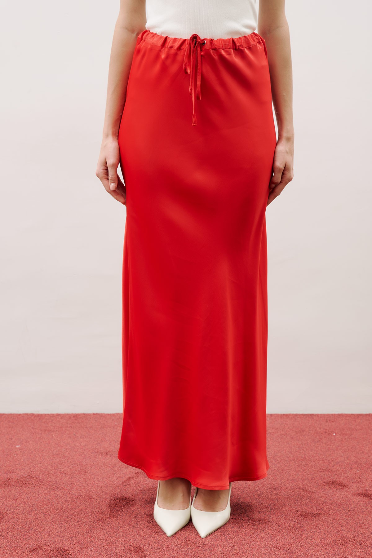 WAIST-ADJUSTABLE SATIN SKIRT RED