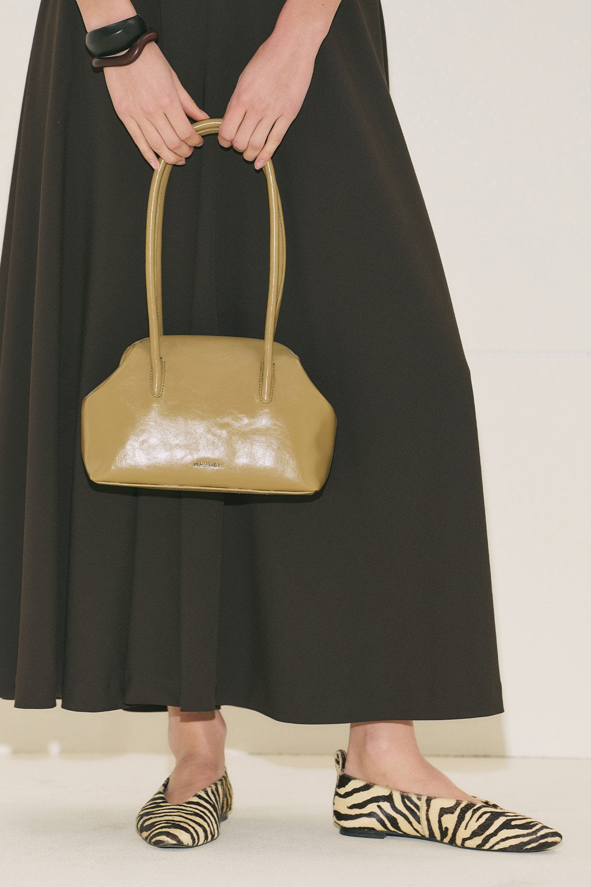 Orta boy, içte cep detaylı, manuka logolu, burs kapamalı, suni deri, astarlı.