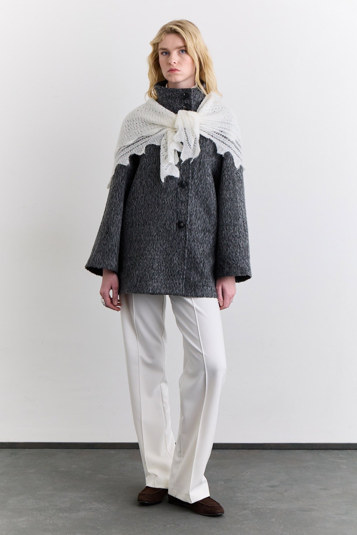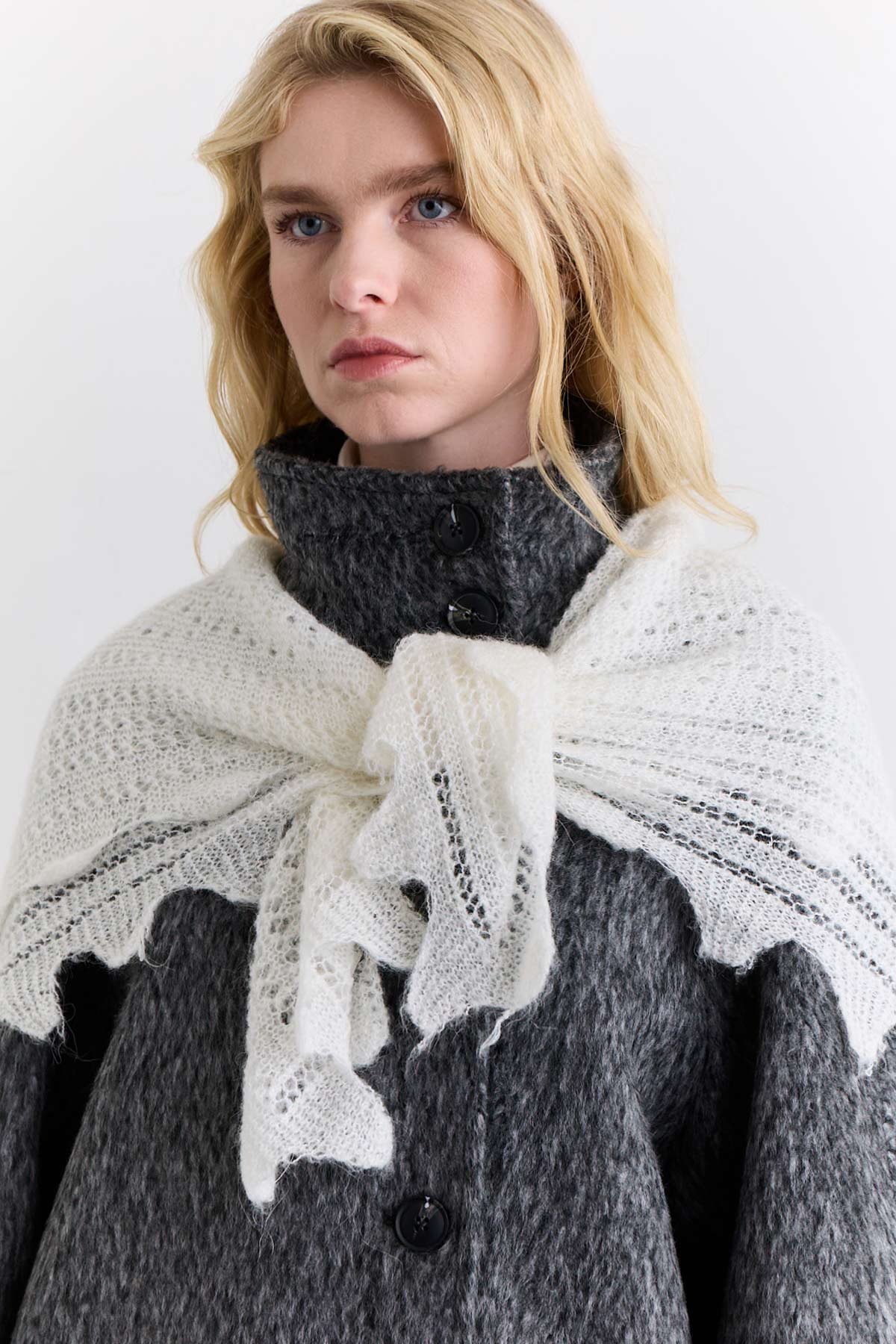 AJOUR KNIT WIDE SHAWL ECRU