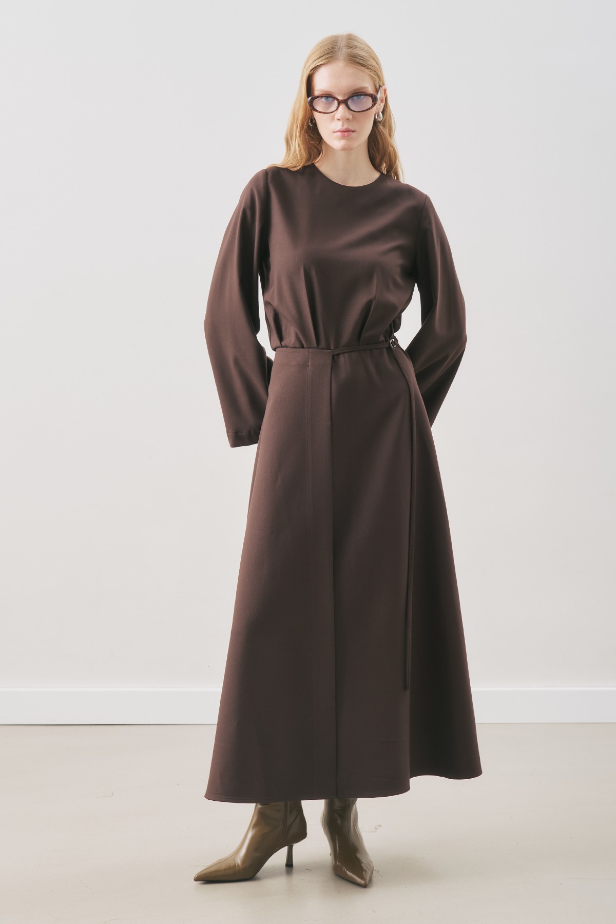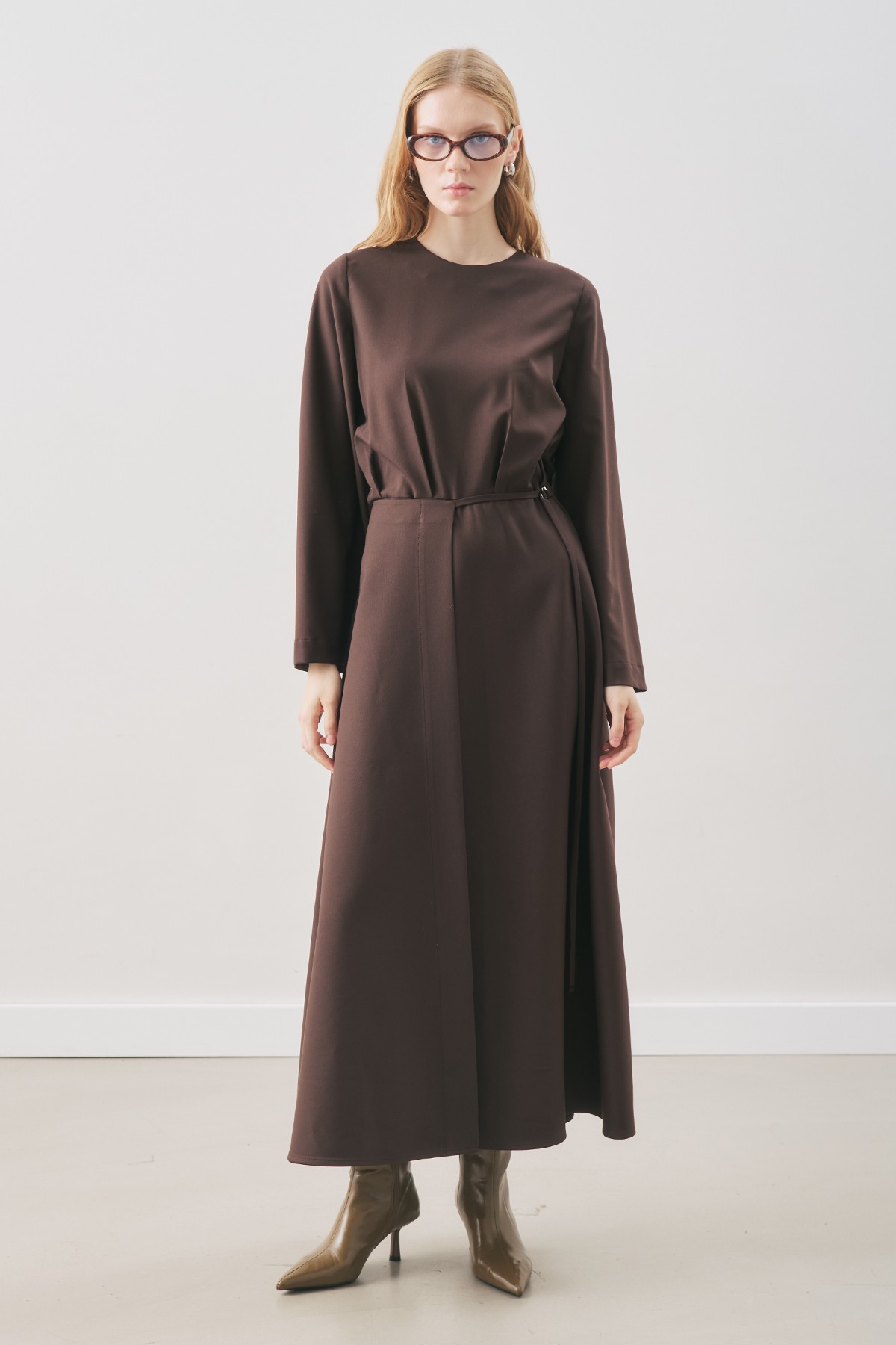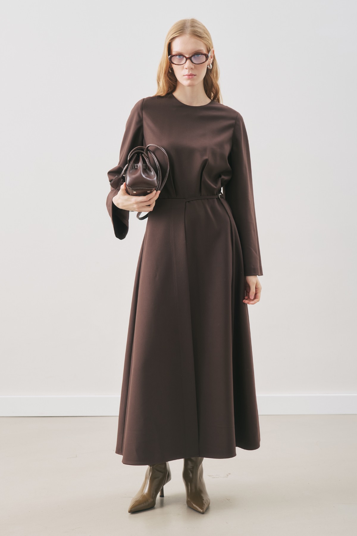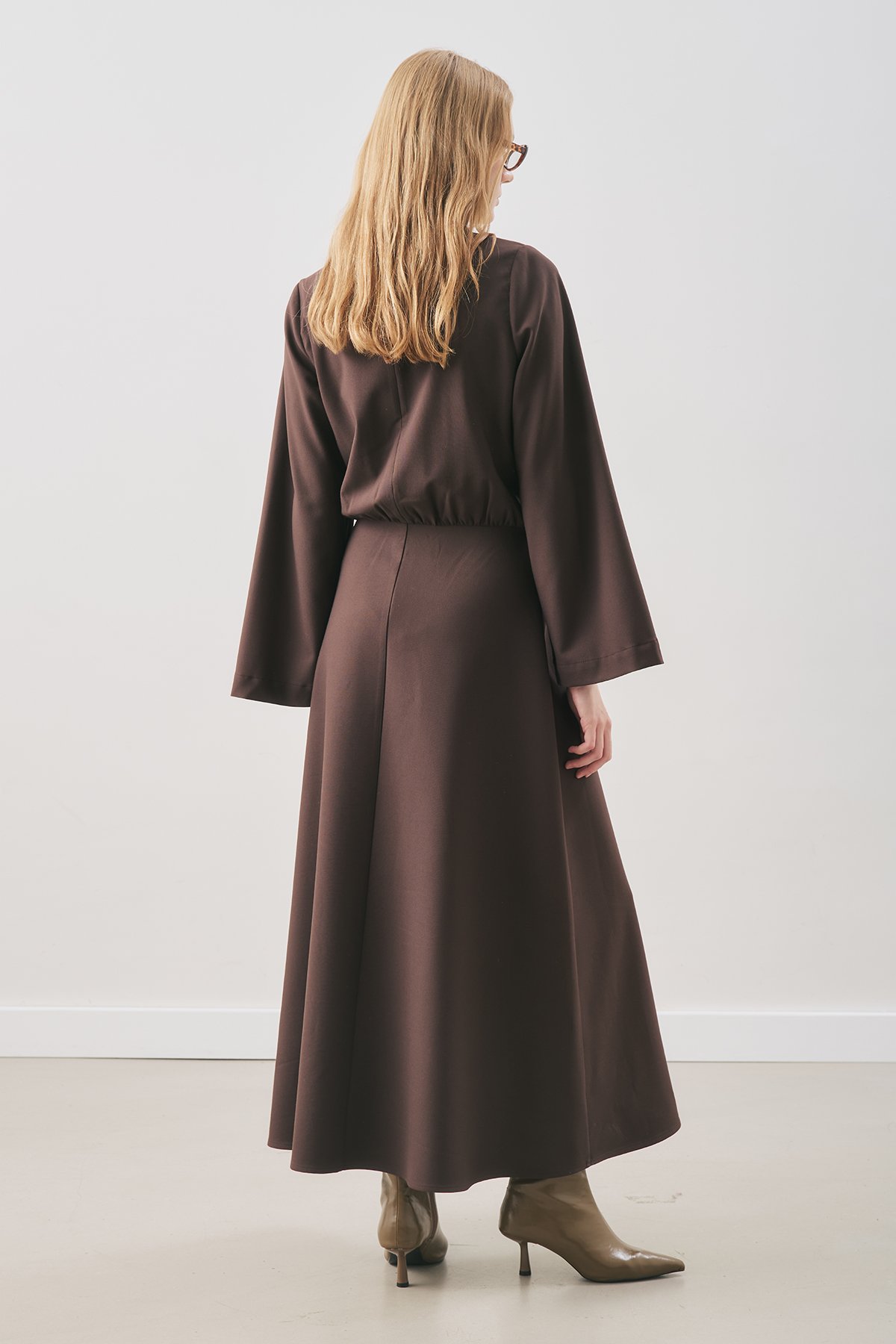 ANVELOP ETEKLİ KLASİK ELBİSE ACI KAHVE