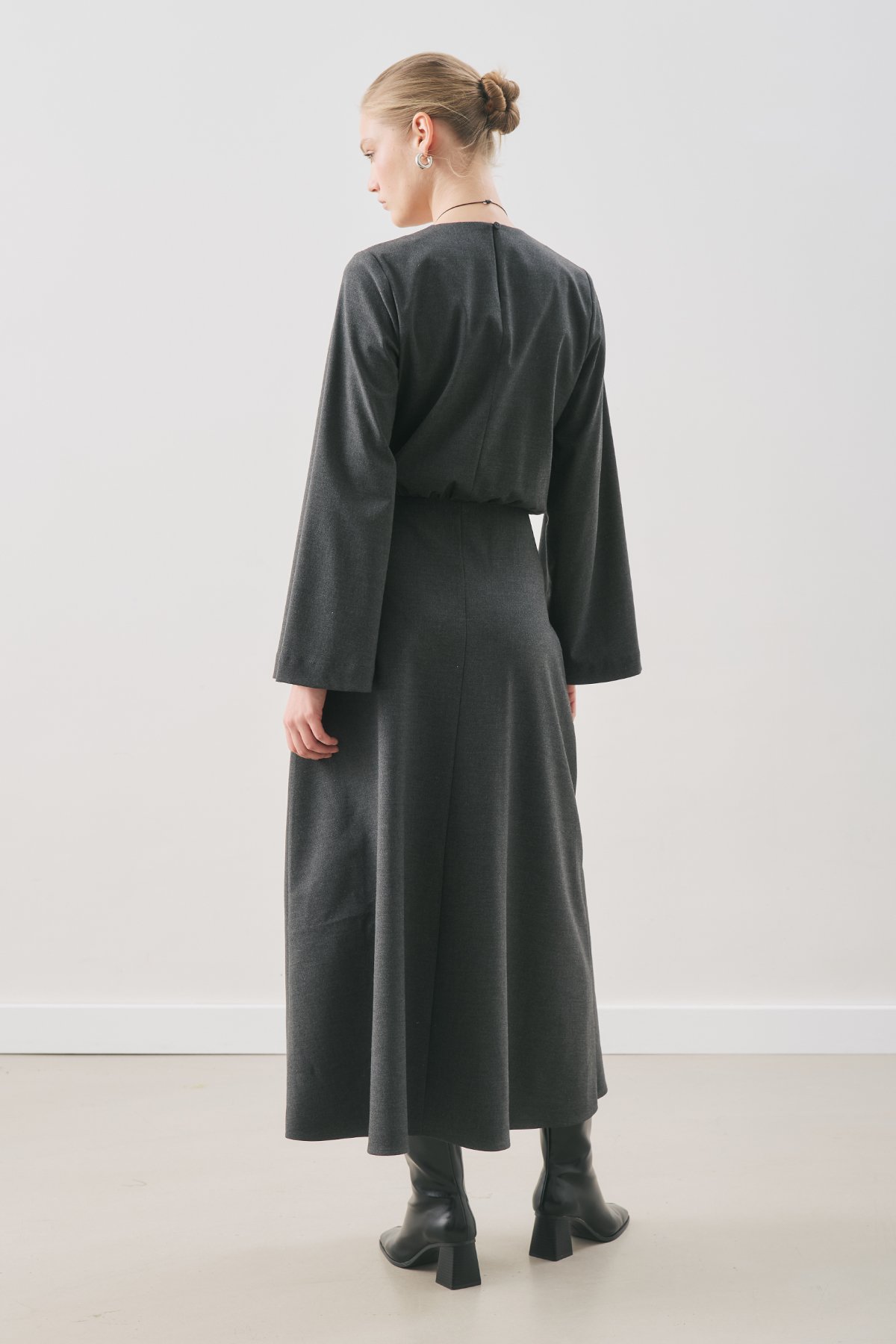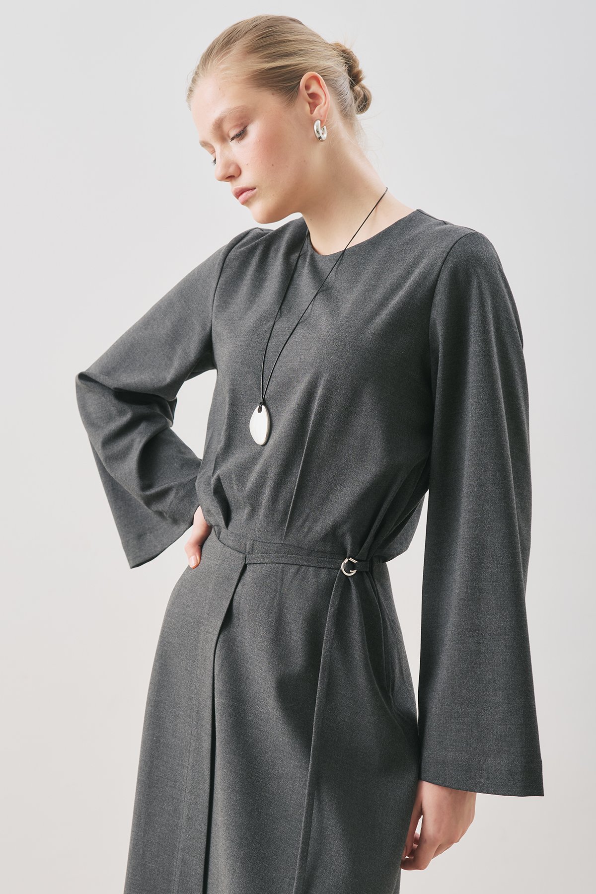 ANVELOP ETEKLİ KLASİK ELBİSE ANTRASİT