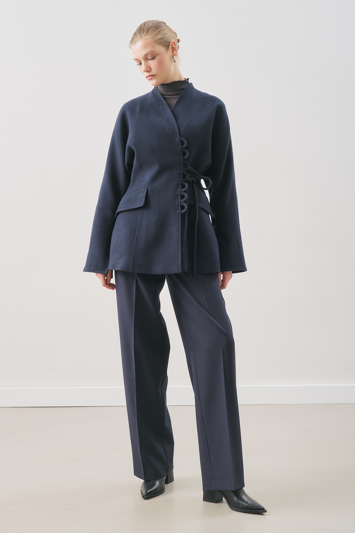 AROA BAĞLAMALI KAŞE CEKET LACİVERT