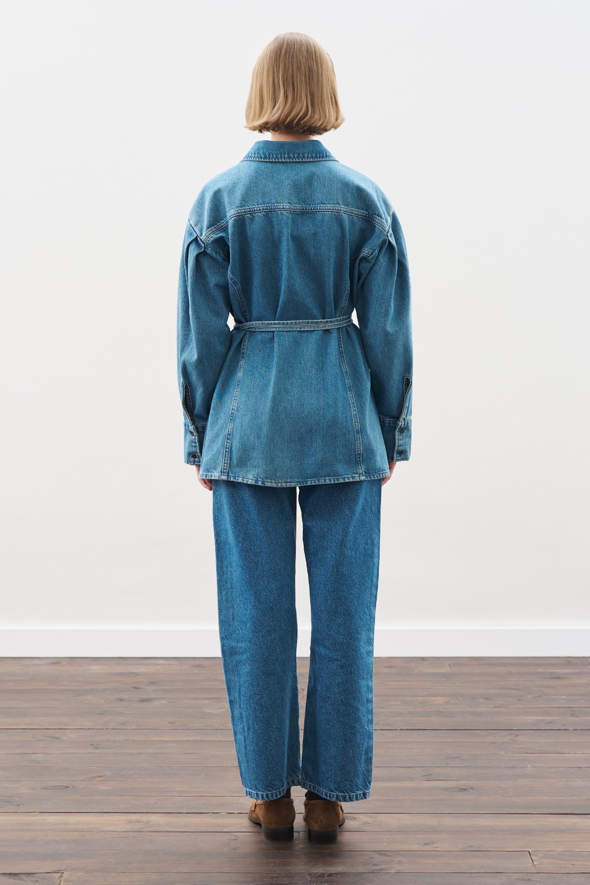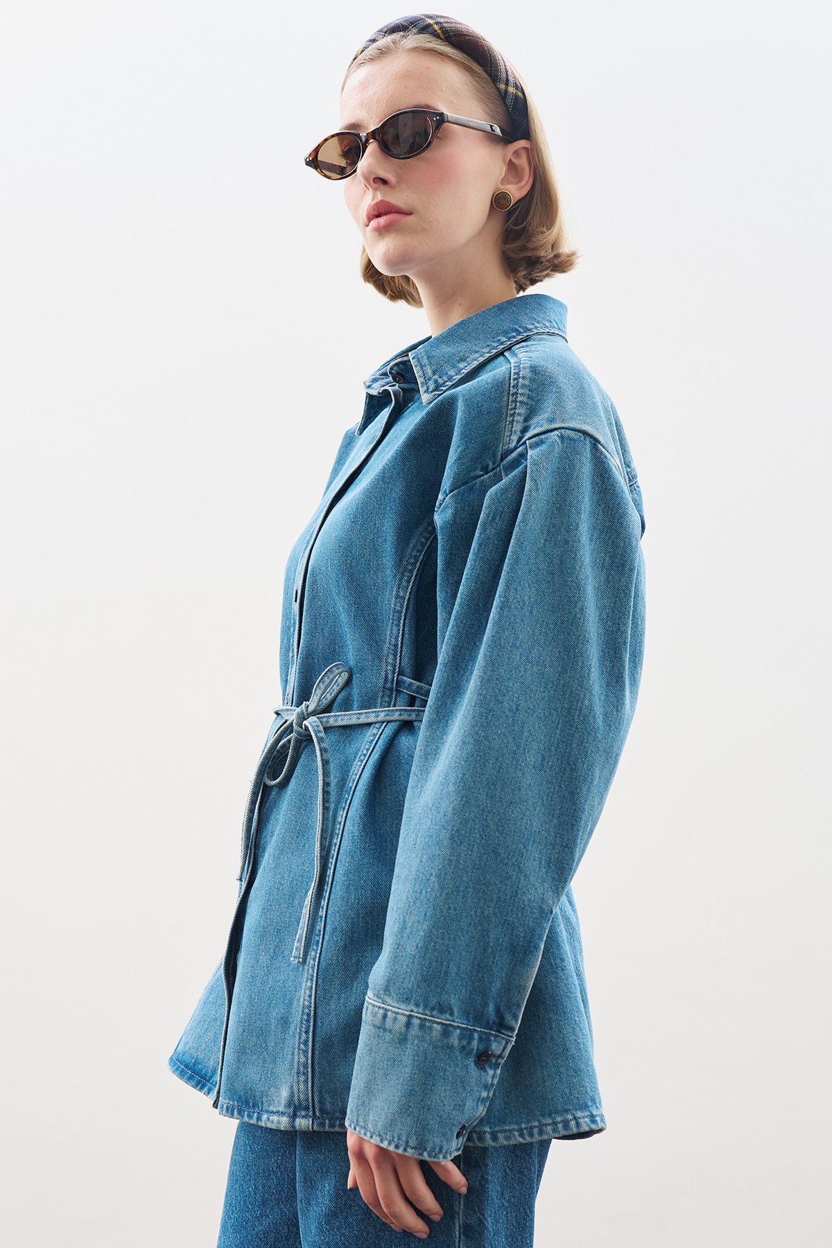 BAĞLAMA DETAYLI DENİM GÖMLEK MAVİ