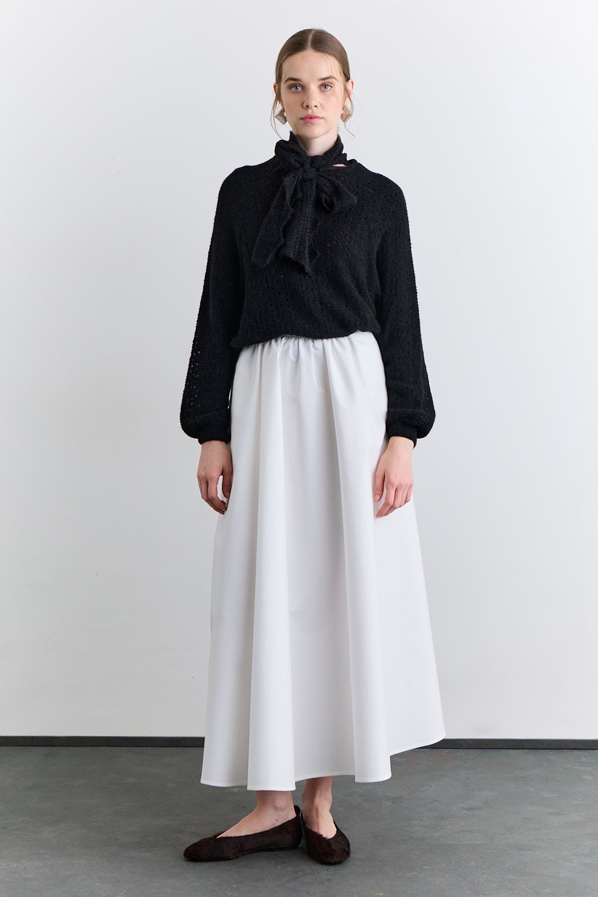 Normal kalıp, yuvarlak yaka, reglan uzun kol, ajur örgülü, bağlama detaylı, ara boy.