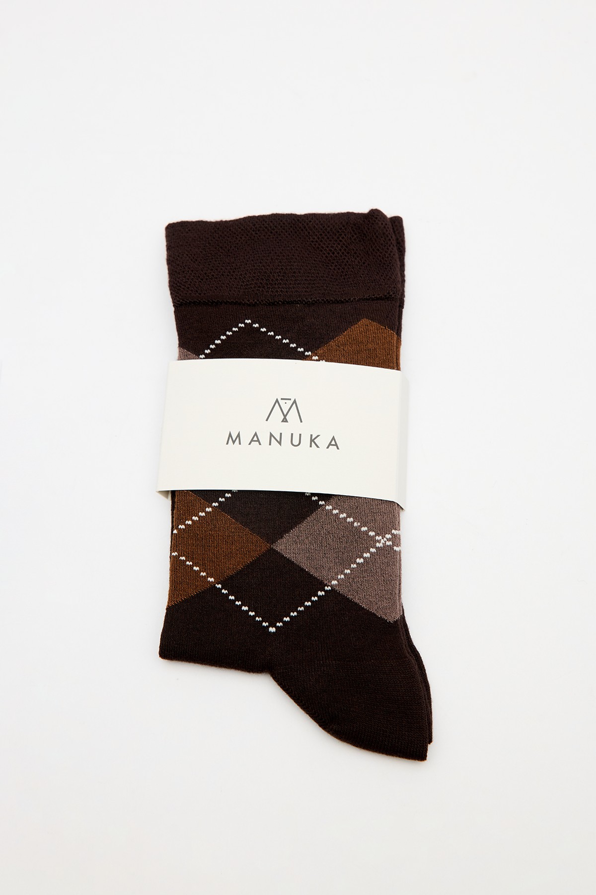 BAKLAVA DESENLİ ÇORAP KAHVERENGİ EKOSE