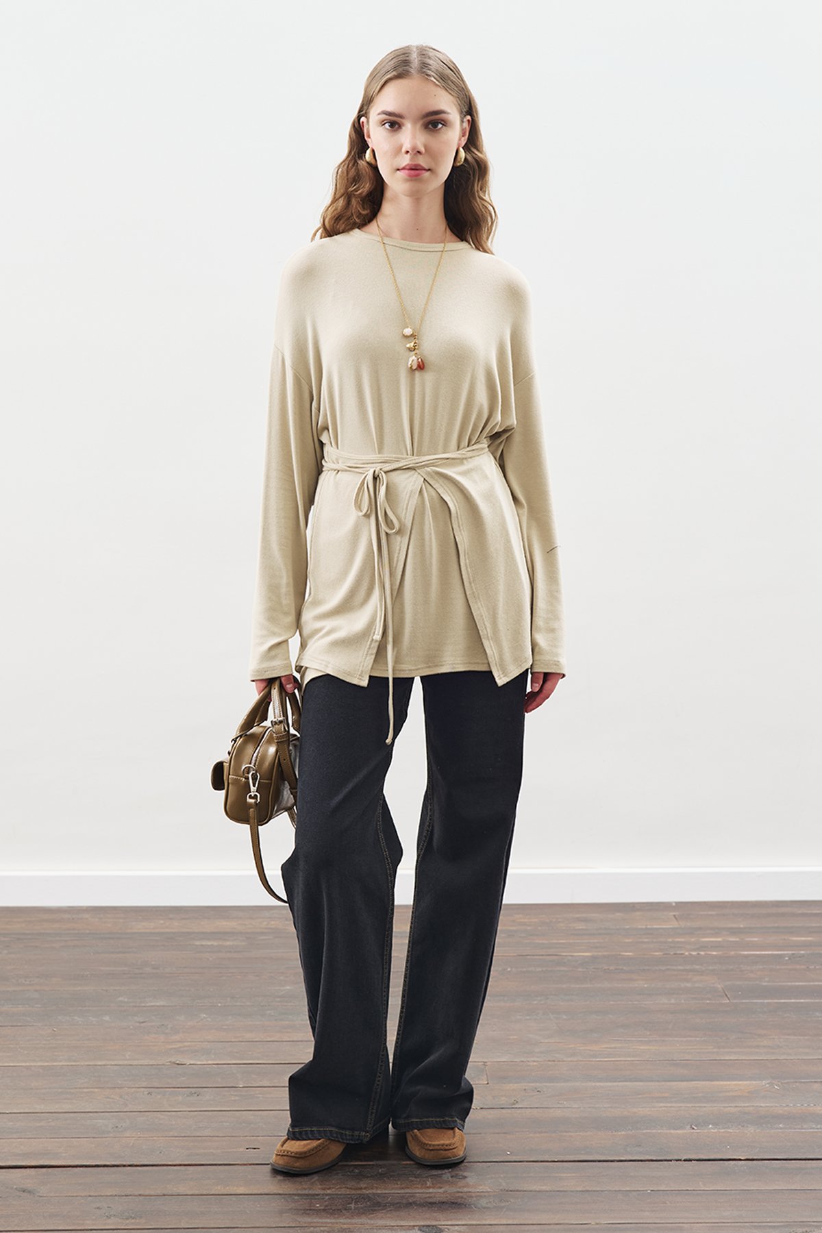 BELİ BAĞLAMA TASARIMLI BLUZ TAŞ