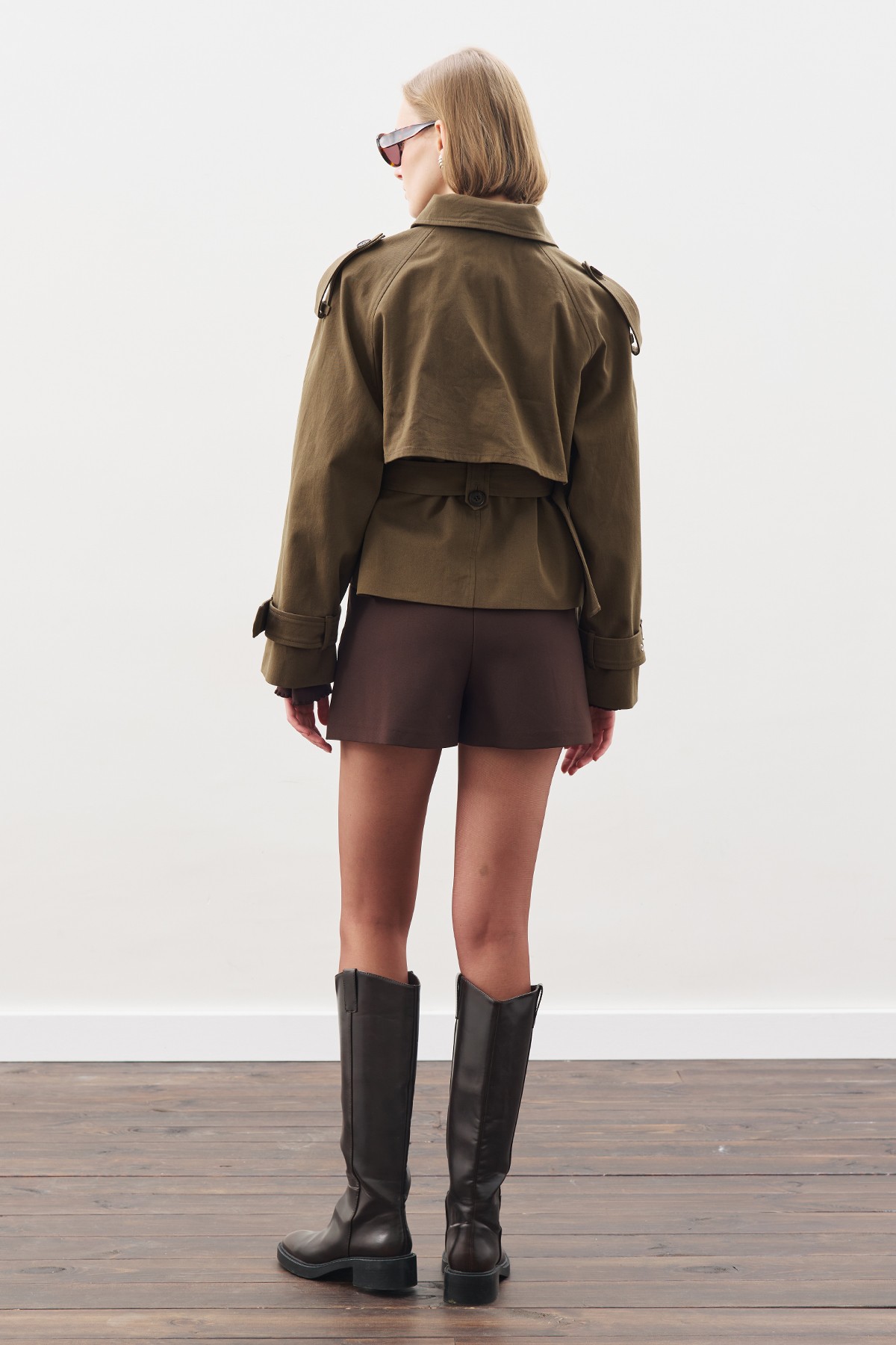 BELTED SHORT TRENCHCOAT KHAKI FEATURES