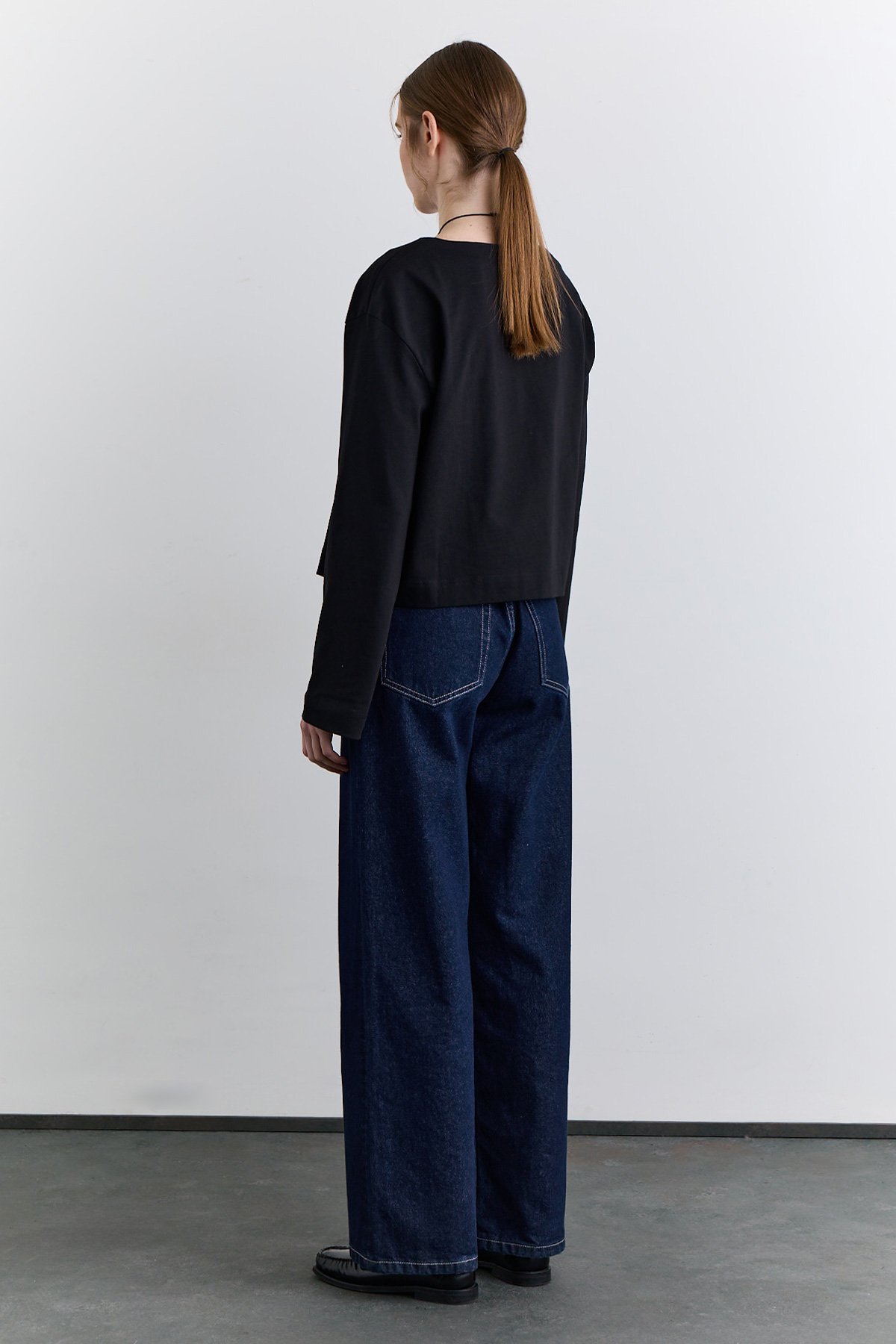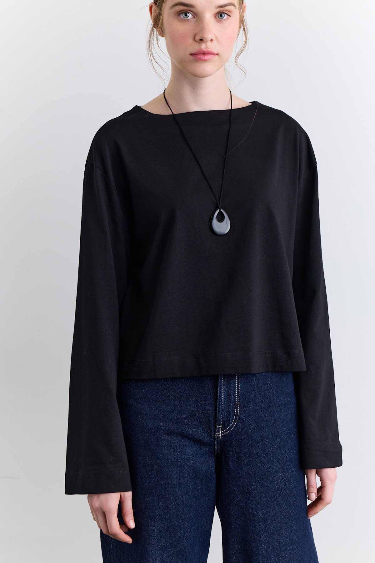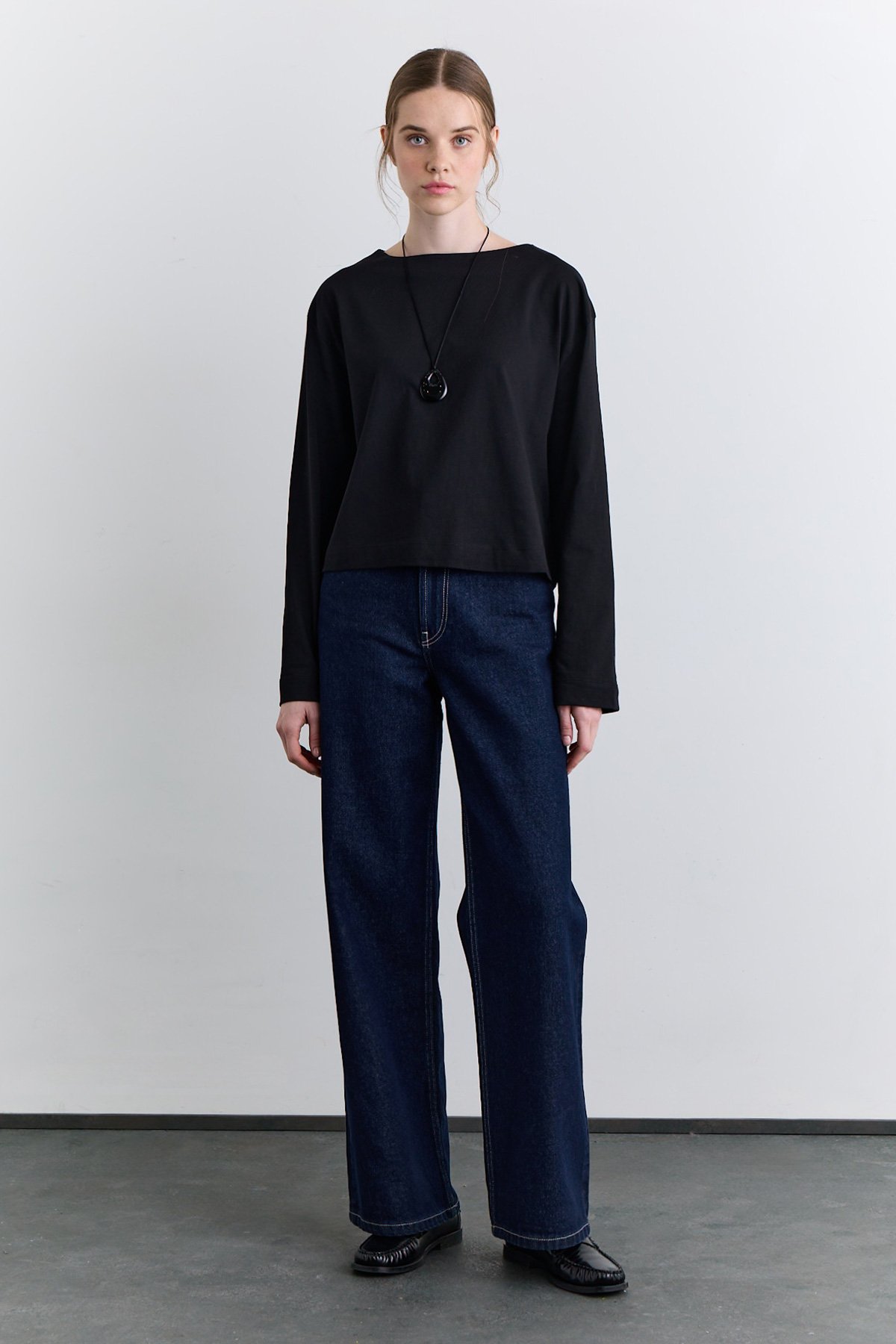 Boat neck, long sleeves, crop length, regular fit. Main Fabric: 100% Cotton Wash inside out. Iron inside out. Maximum 30°C wash. Do not bleach. Low temperature ironing. Do not dry clean. Do not tumble dry.