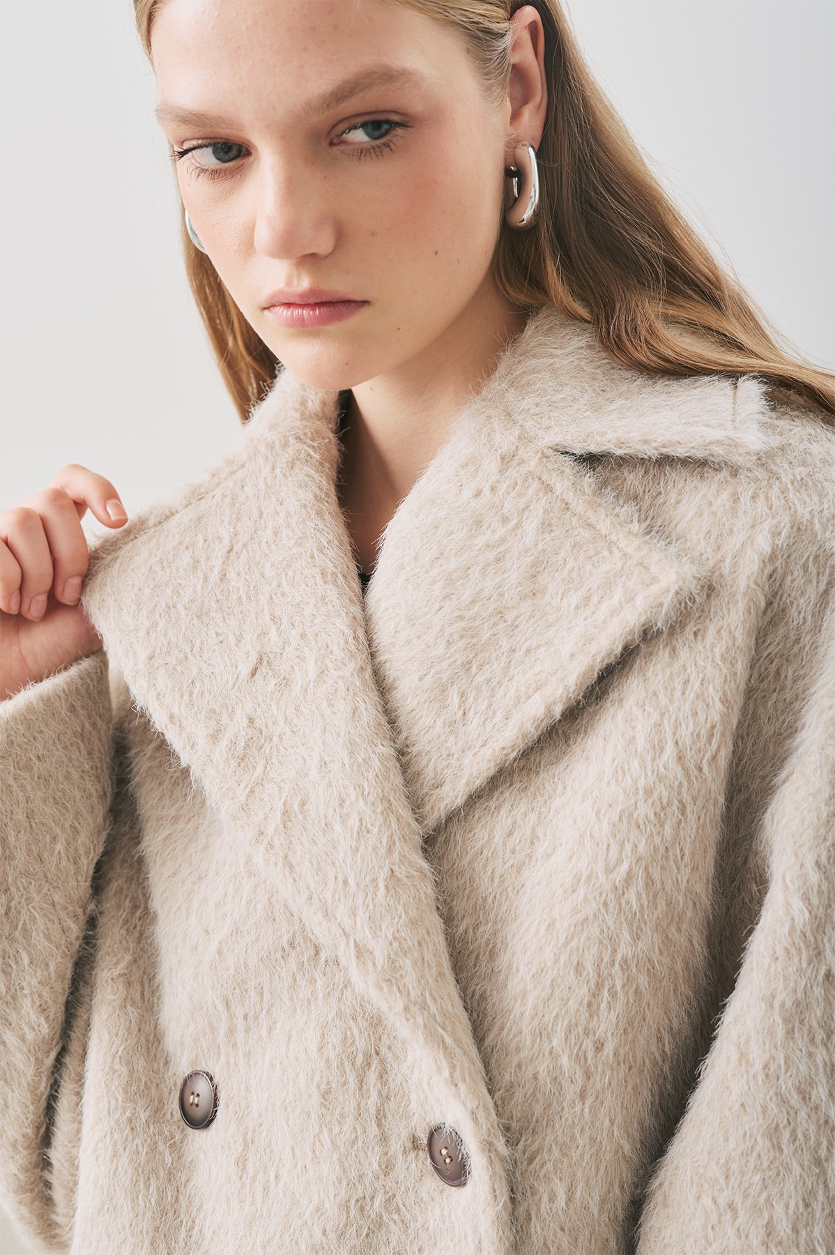 BOUCLE KRUVAZE KABAN VİZON ÖZELLİKLERİ