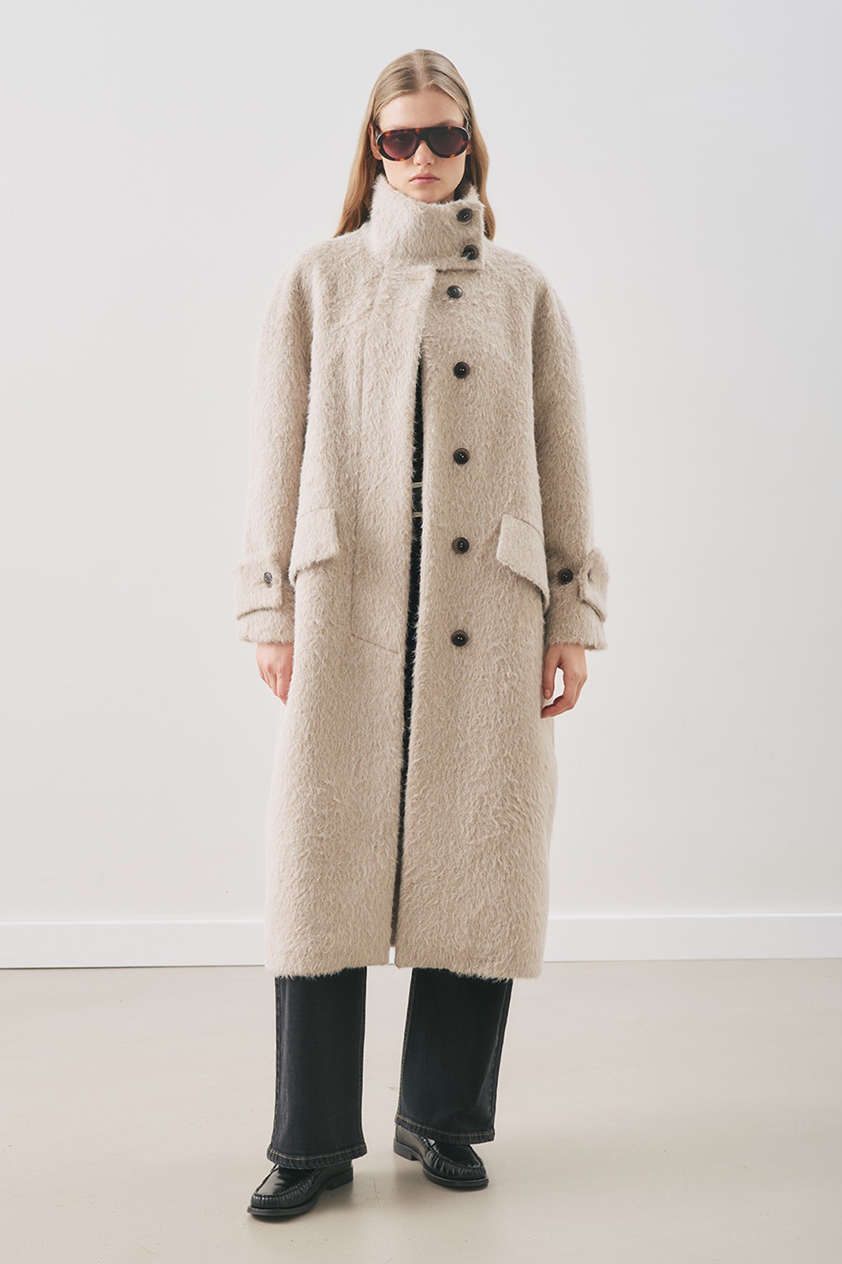 BOUCLE WIDE-COLLAR COAT MINK FEATURES