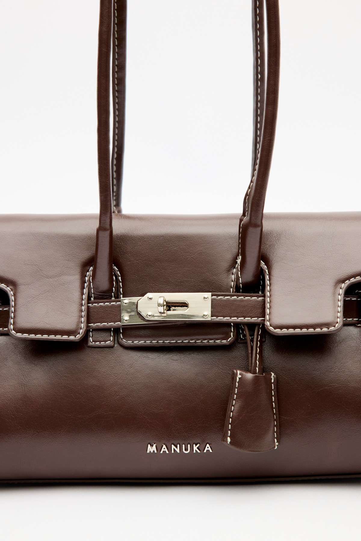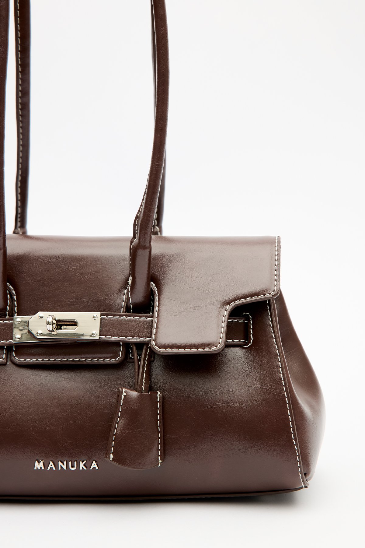 BUCKLE DETAIL FLAP BAG BROWN FEATURES