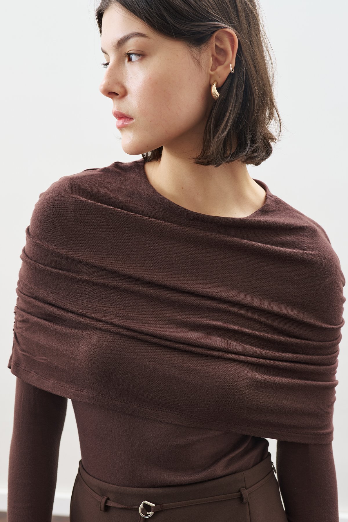 GATHERED DETAIL BLOUSE LIGHT BROWN