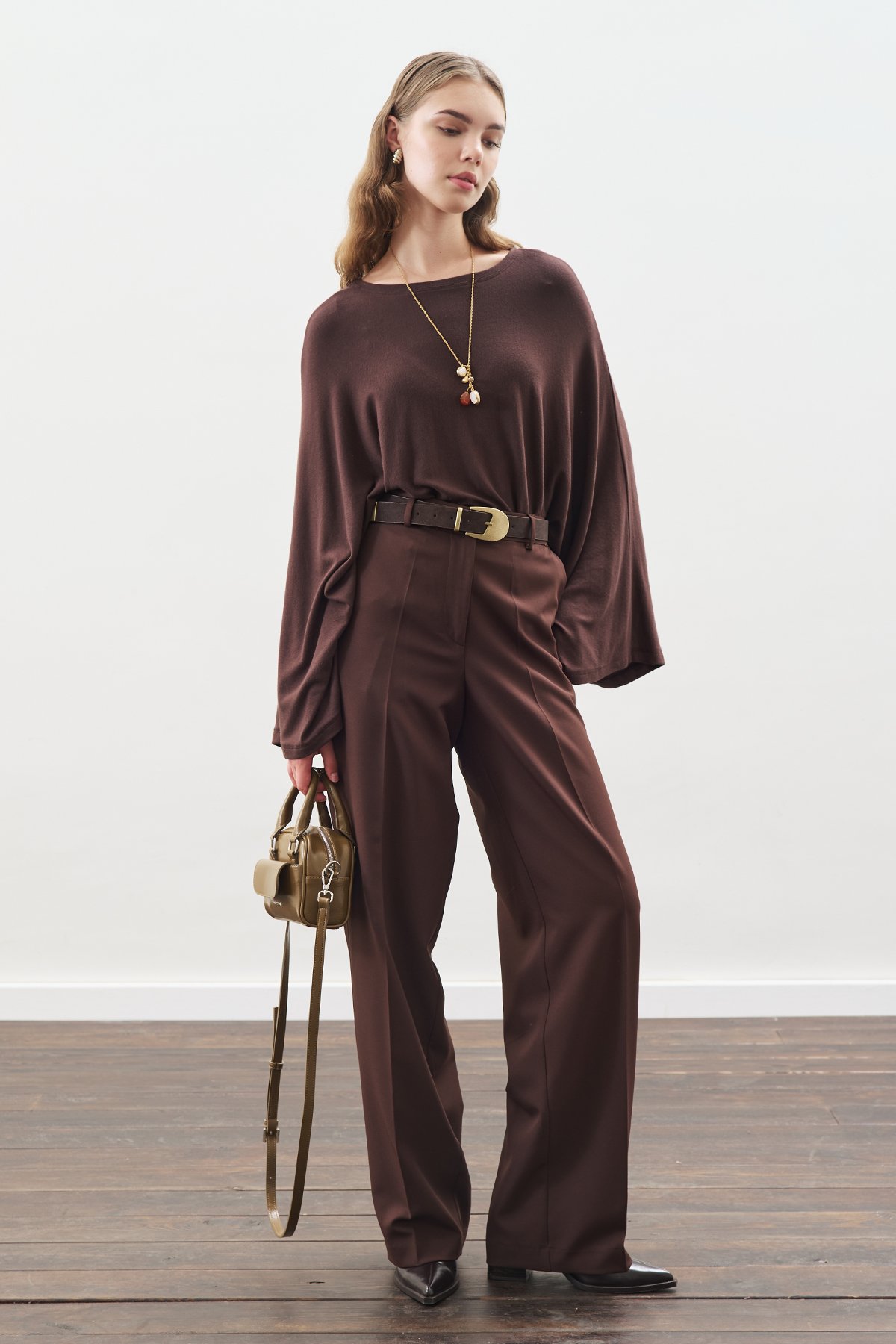 CAPE STYLE BLOUSE LIGHT BROWN FEATURES