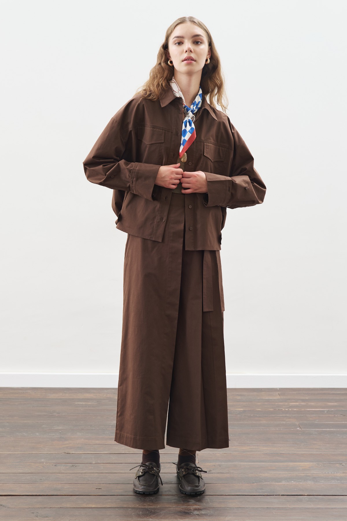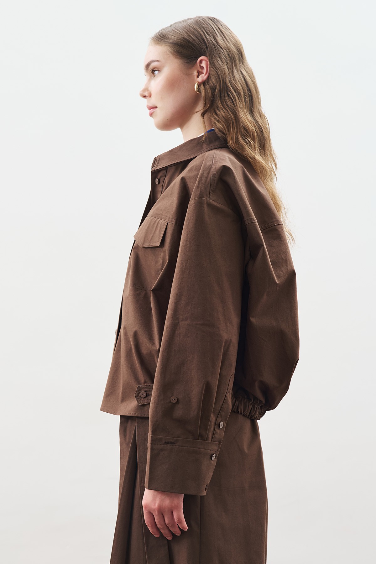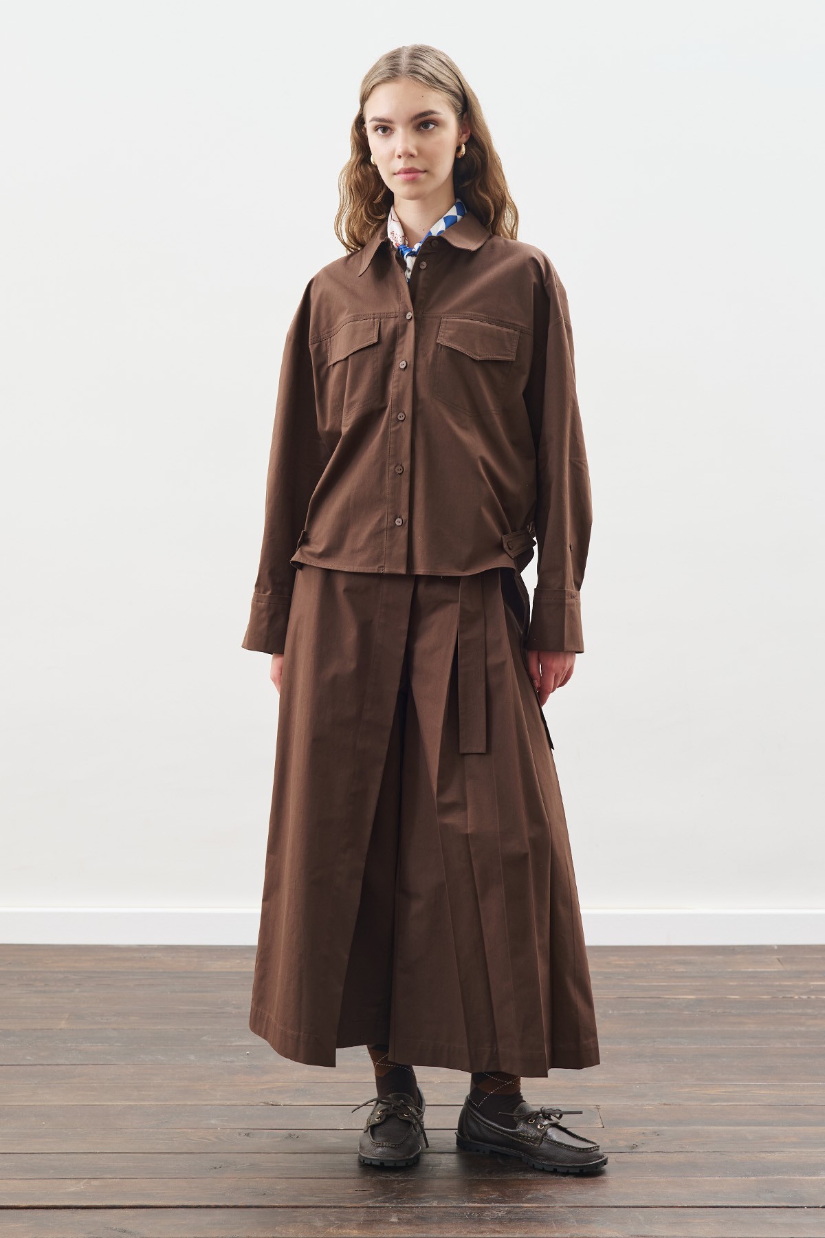 Pocket Detail Gabardine Shirt Brown FEATURES