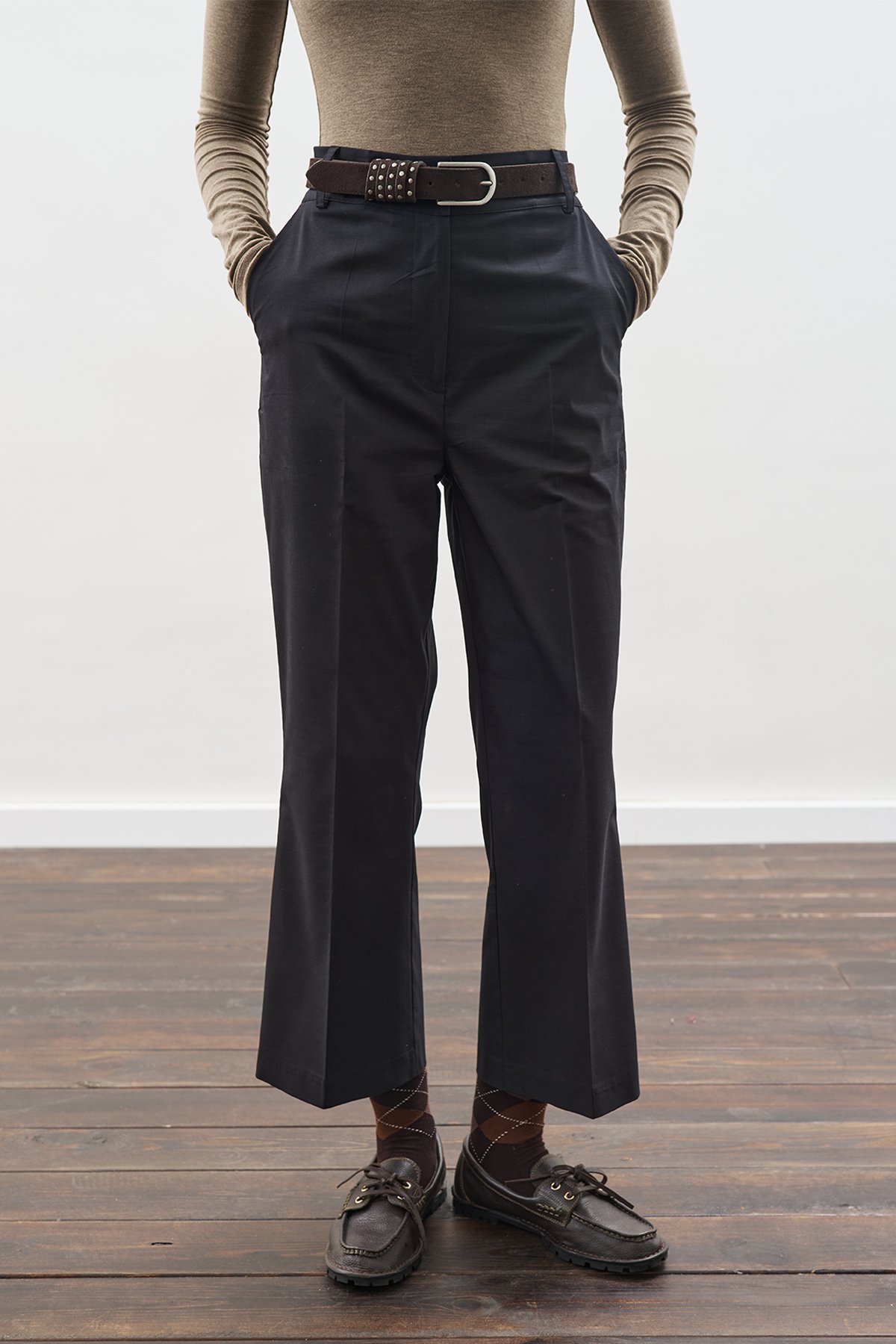 Mid waist, pocket detail, flare leg, flare fit.Main Fabric: 67% Cotton, 30% Polyester, 3% Elastane