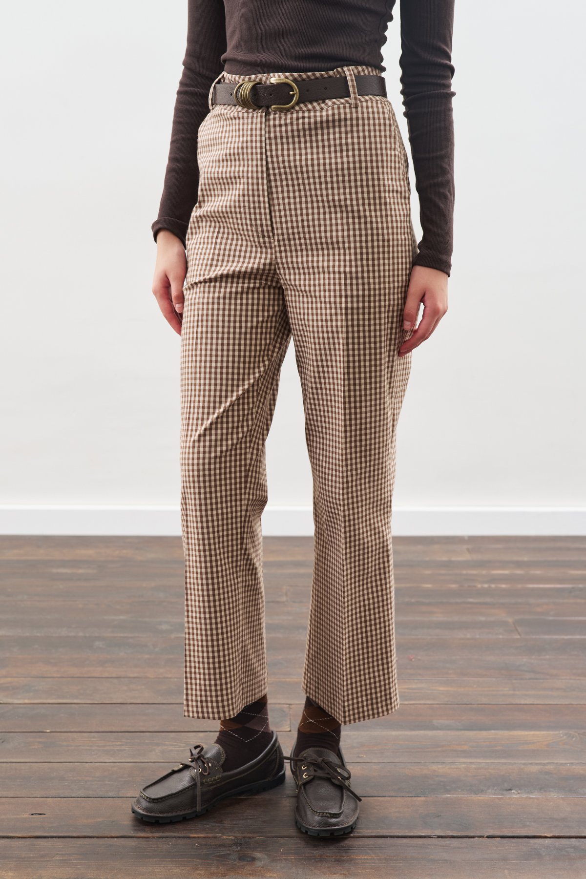 CHECKED FLARE TROUSERS CHECK PATTERN FEATURES