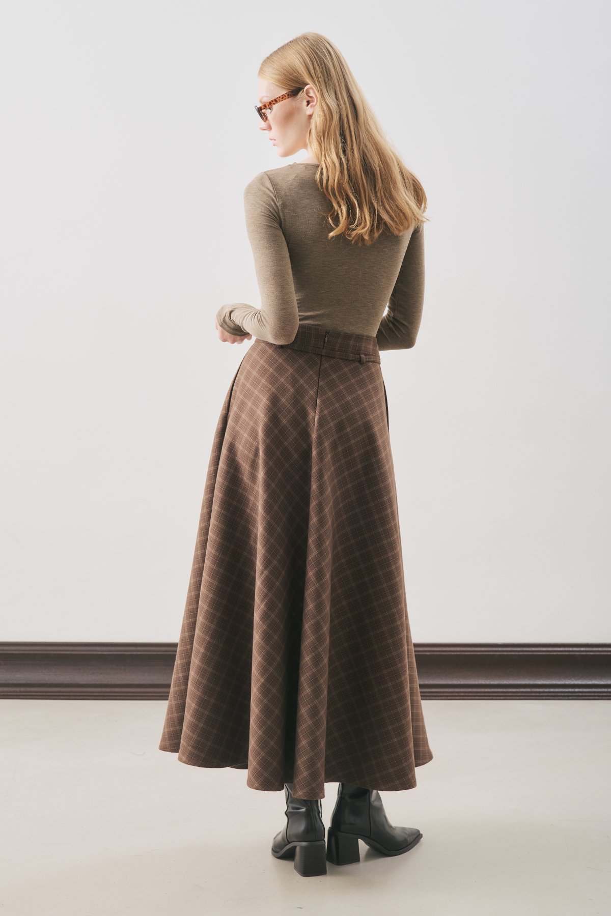CHECKED PATTERN WIDE SKIRT BROWN FEATURES