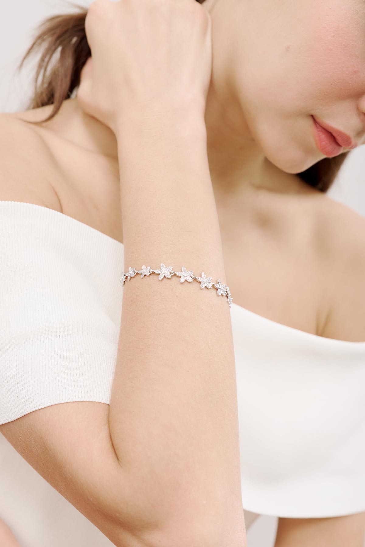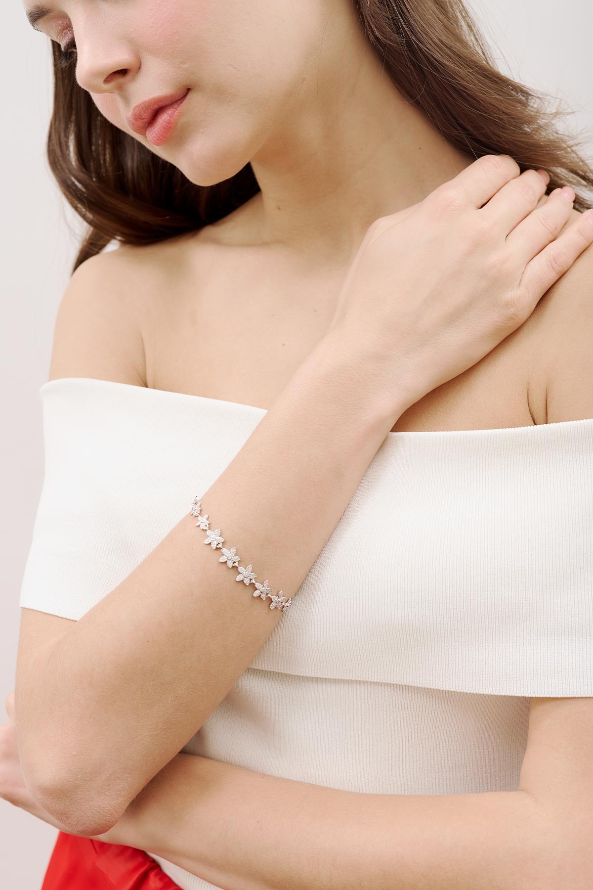ÇİÇEK DETAYLI TAŞLI BİLEKLİK GÜMÜŞ