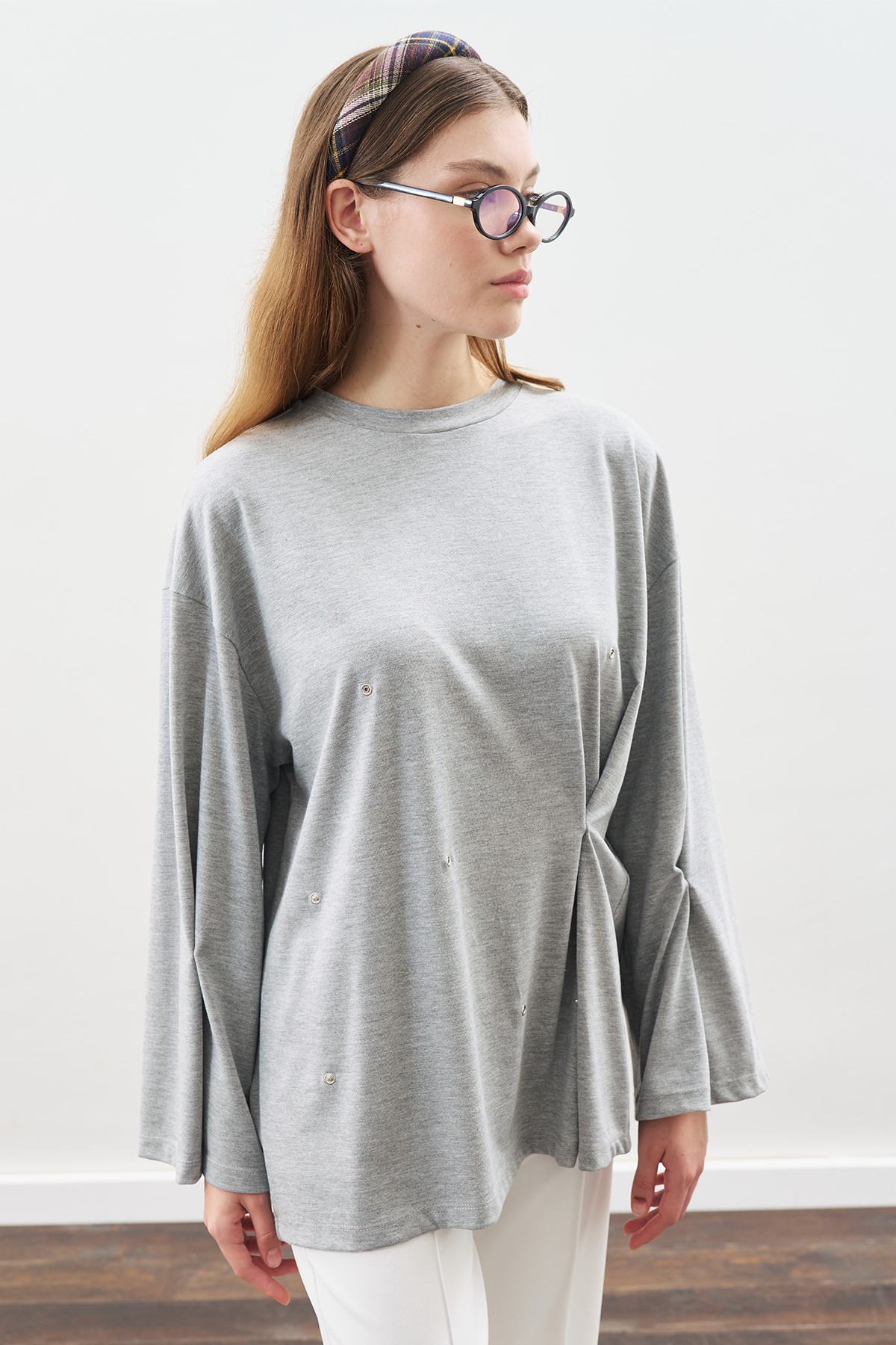 ÇITÇIT AYARLAMALI TSHIRT GRİ MELANJ