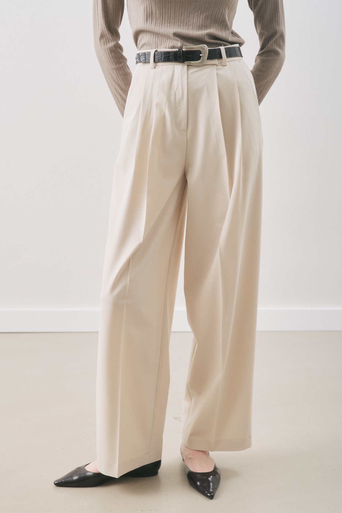 CLASSIC PLEATED PANTS BEIGE FEATURES