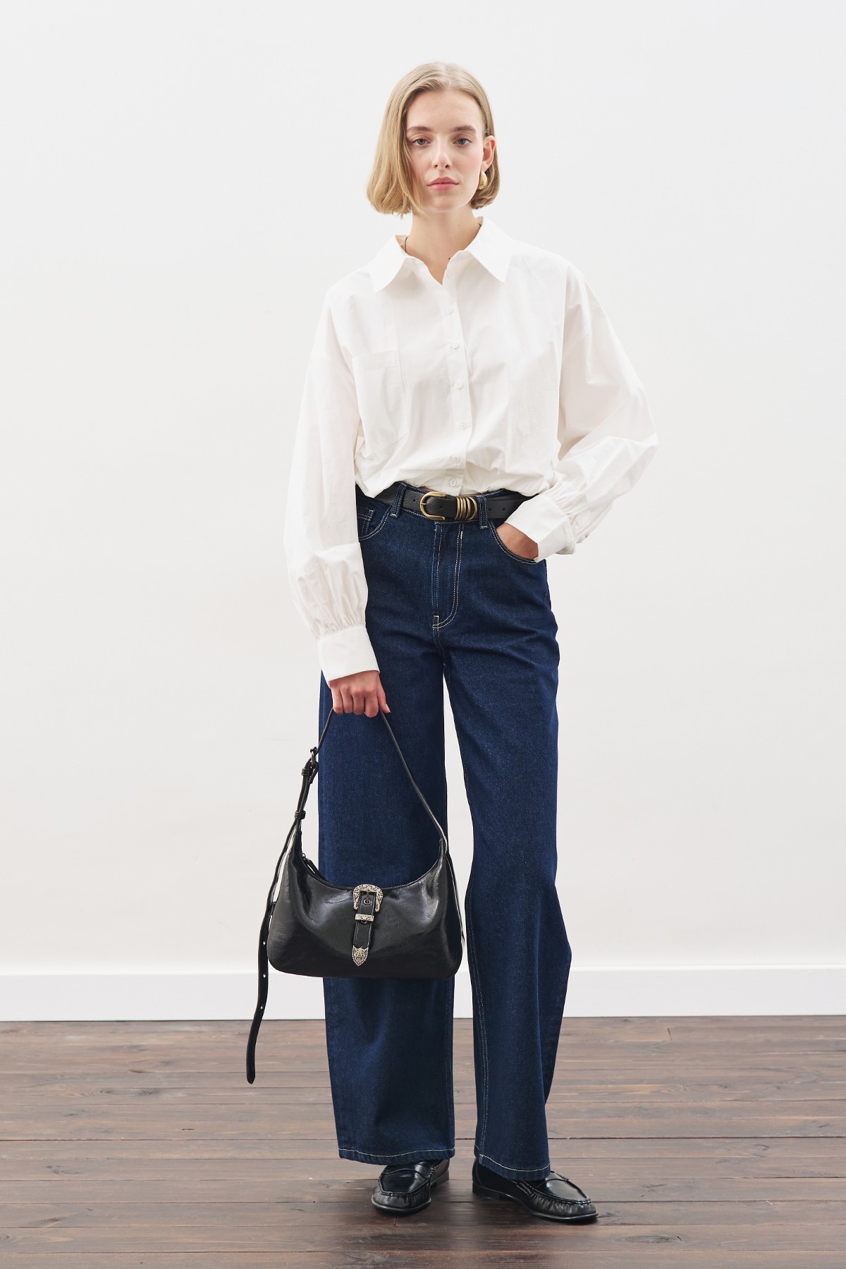 Gömlek yaka, uzun kol,crop boy,düğmeli kapama, normal kalıp.Ana Kumaş %100 Pamuk