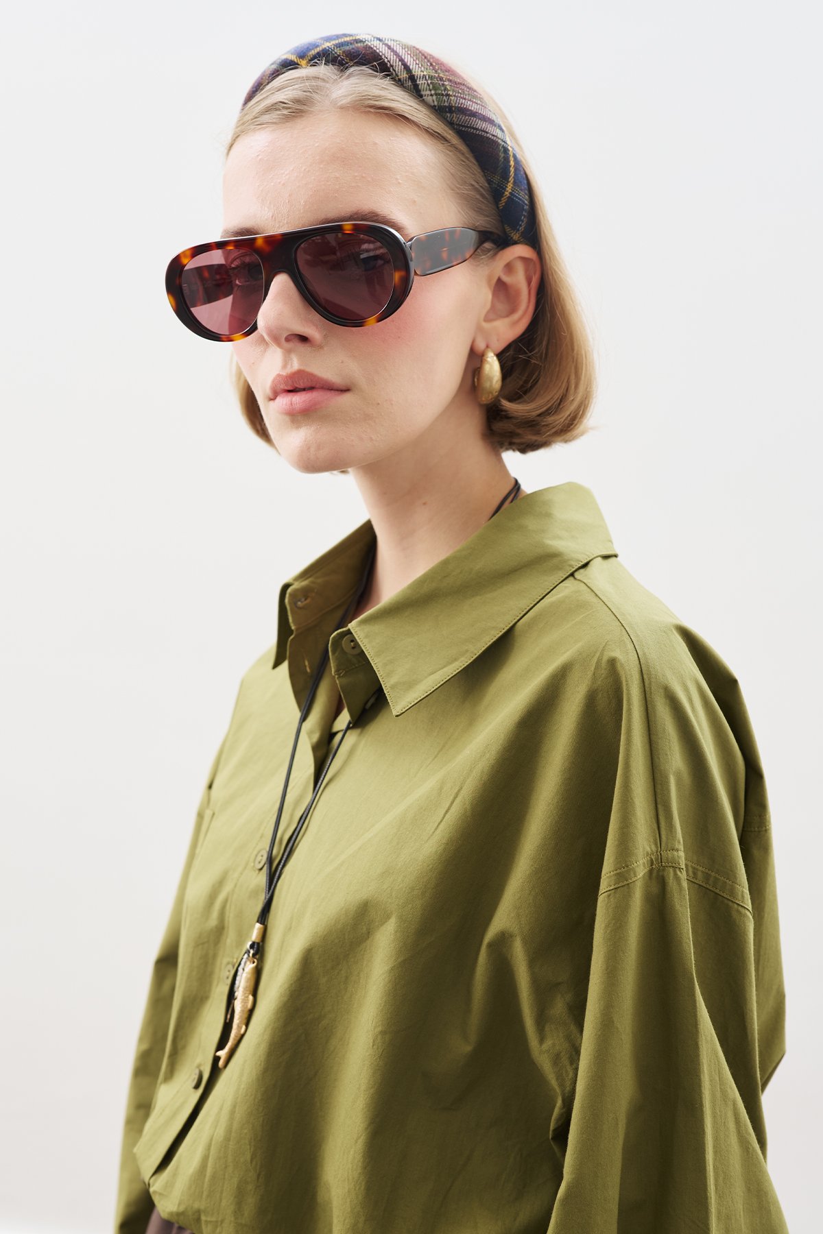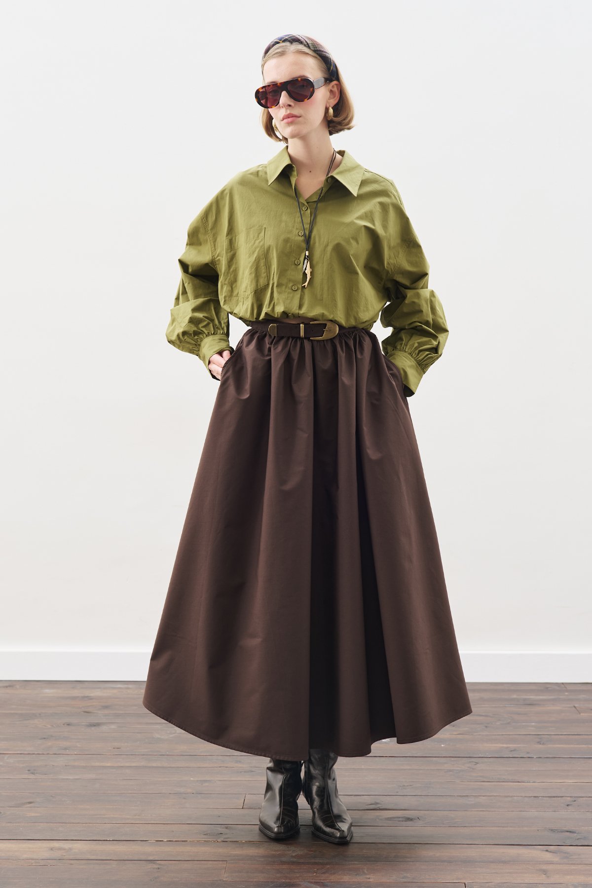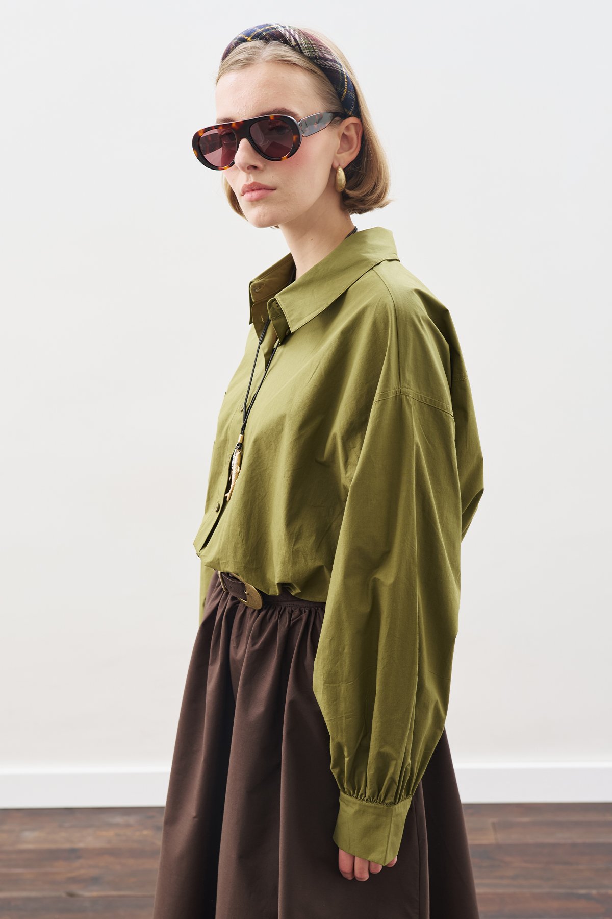 CROP BALON FORM GÖMLEK YAĞ YEŞİLİ