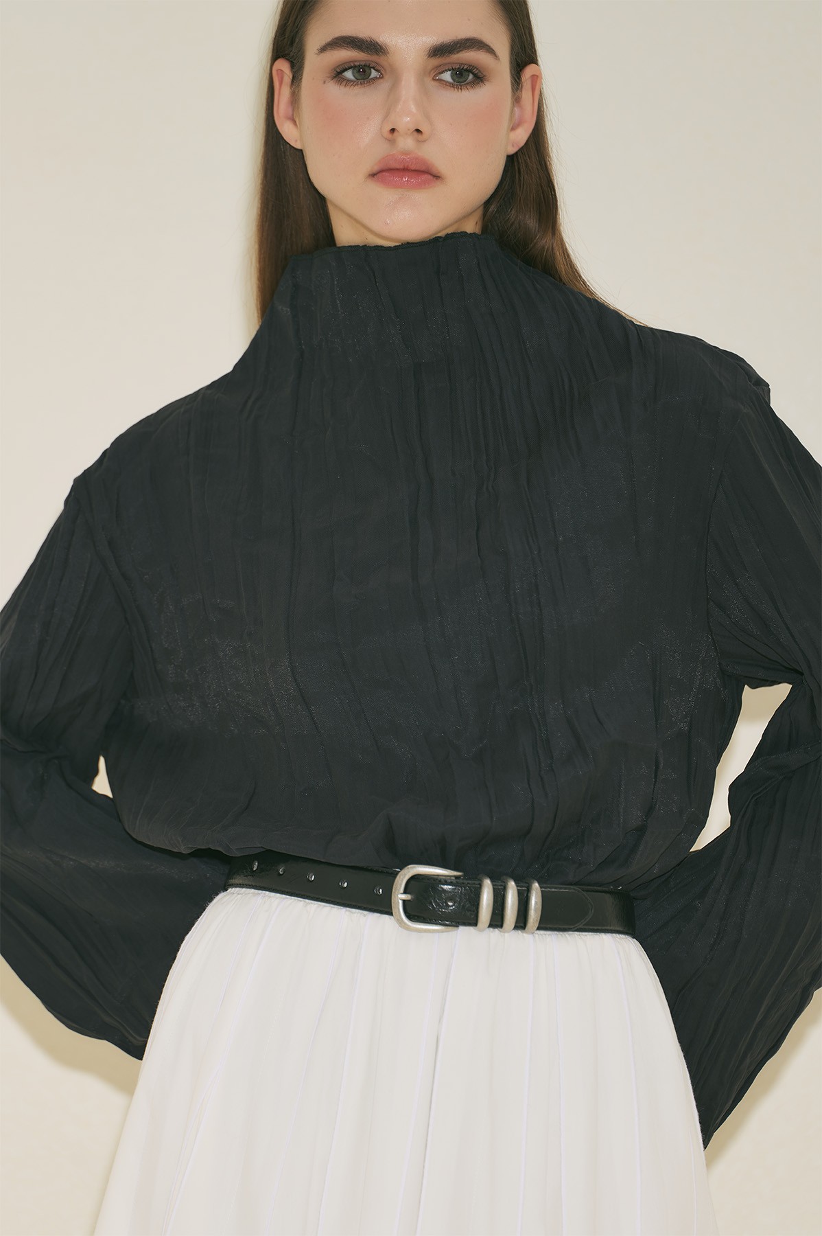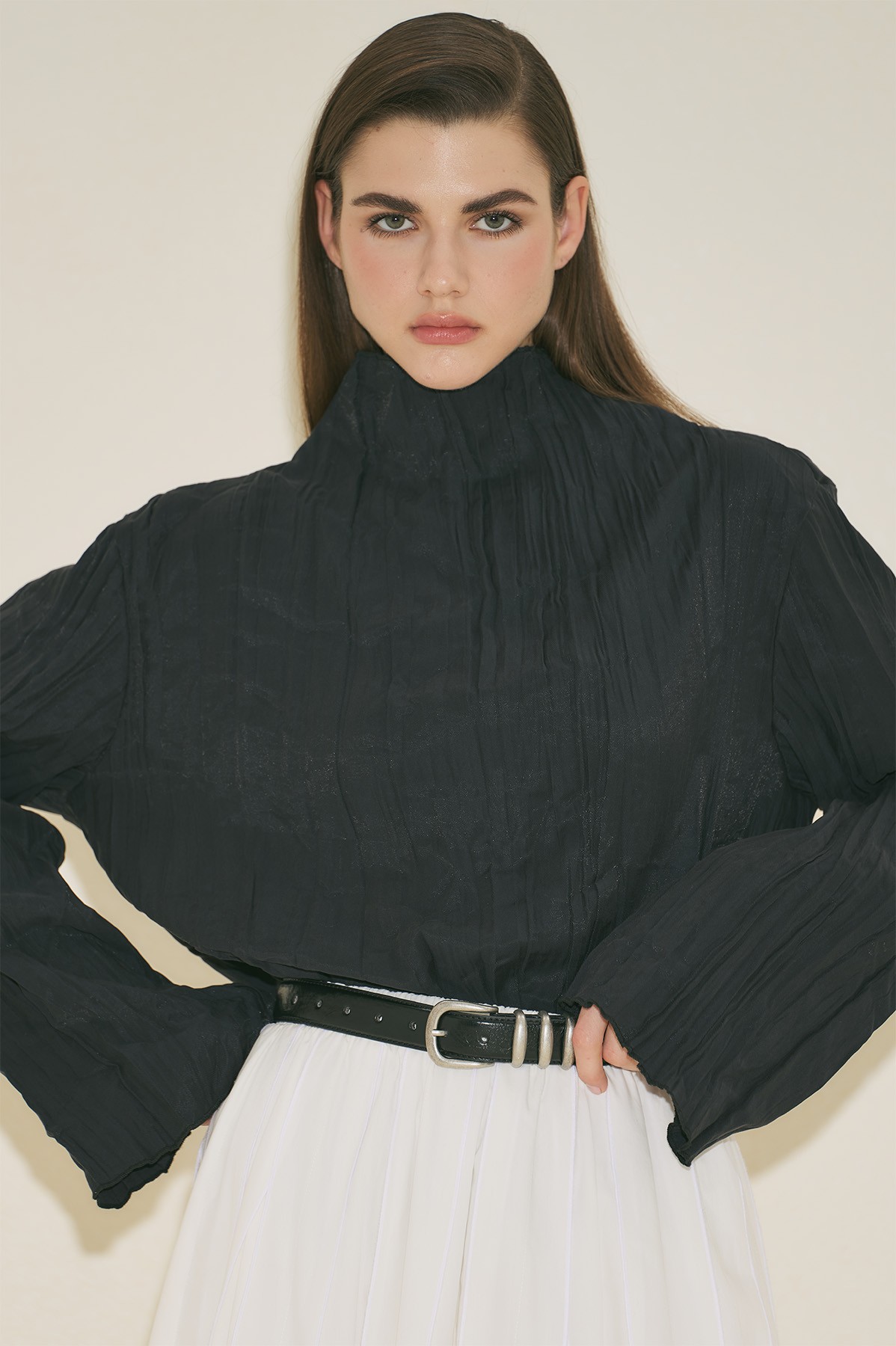 Regular form, yüksek degaje yaka, uzun kollu, crop boy.
