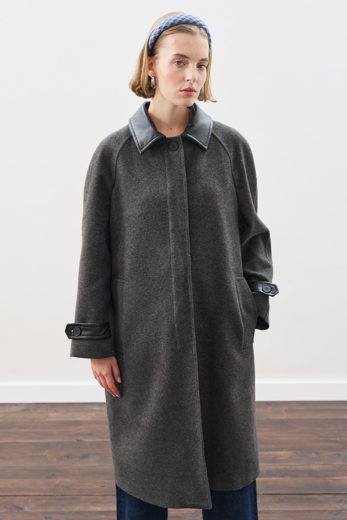 DERİ DETAYLI KAŞE KABAN ANTRASİT
