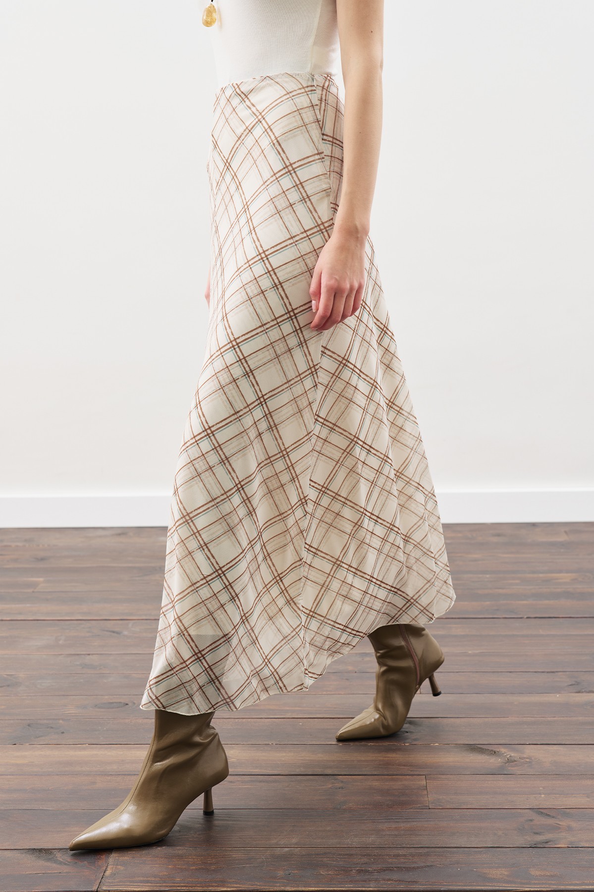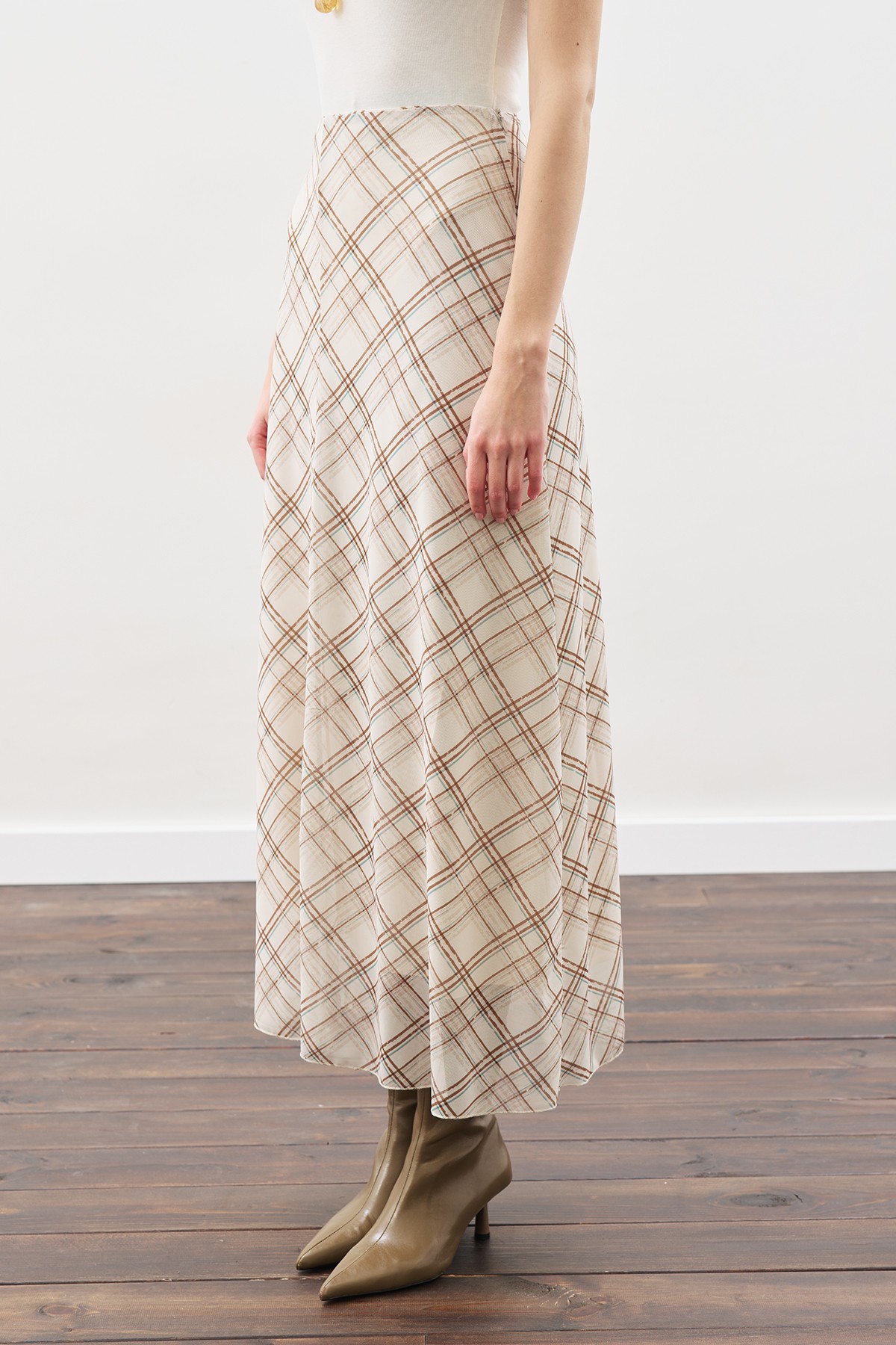 DESENLİ TÜL ETEK BEJ EKOSE