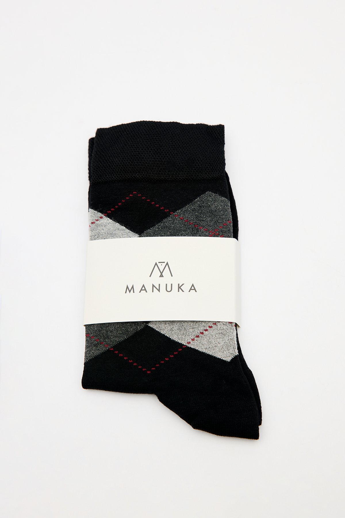 DIAMOND PATTERN SOCKS BLACK CHECK