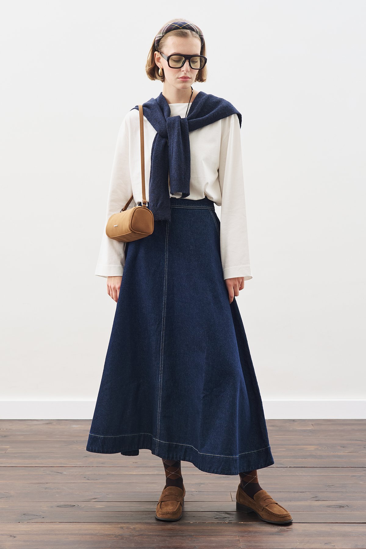 DİKİŞ DETAYLI GENİŞ DENİM ETEK İNDİGO ÖZELLİKLERİ