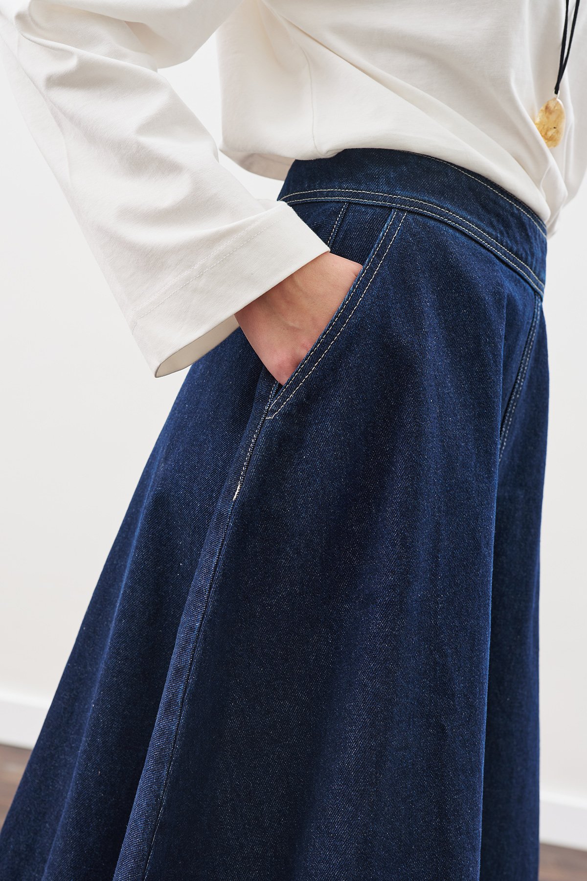 DİKİŞ DETAYLI GENİŞ DENİM ETEK İNDİGO