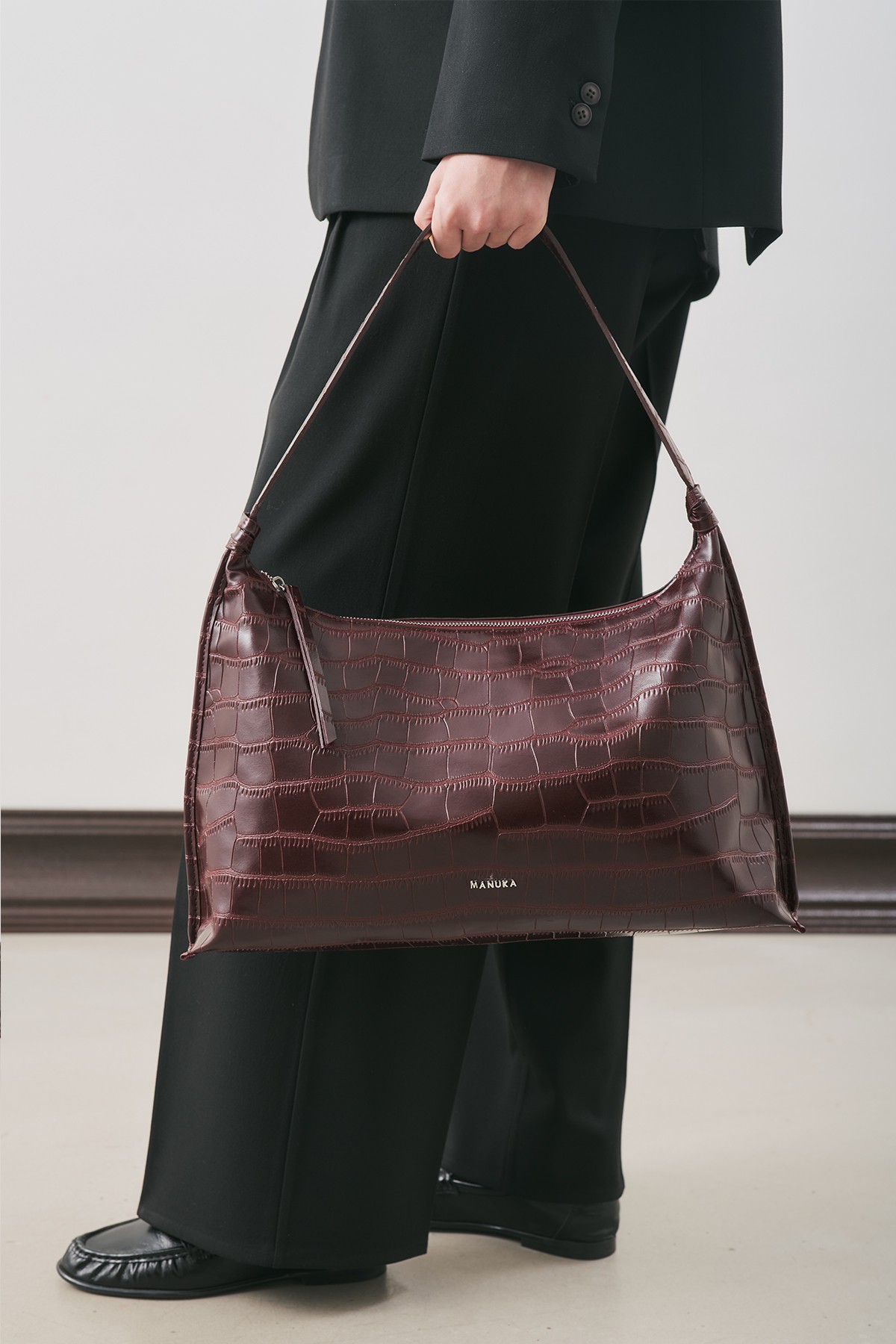DOKULU DERİ OMUZ ÇANTASI BORDO