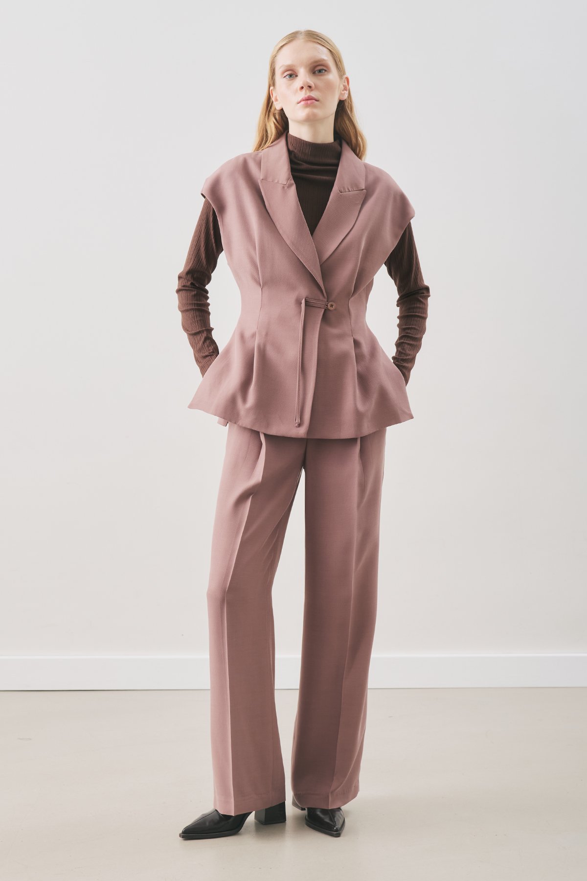 Normal kalıp,ceket yaka,kolsuz,bele oturan form,ara boy,düğmeli kapama.Ana Kumaş %64 Tencel,%36 Viskon