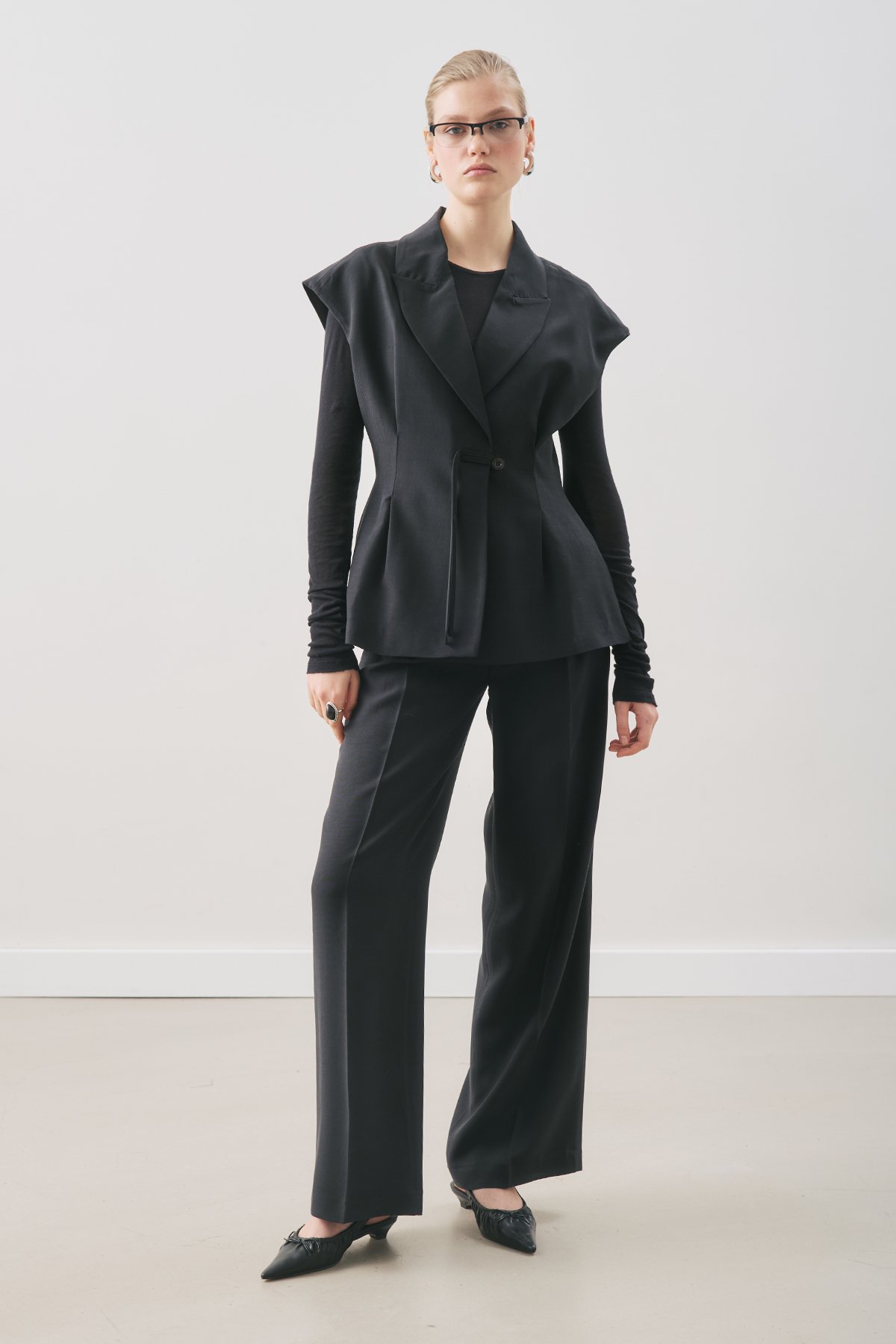 Normal kalıp,ceket yaka,kolsuz,bele oturan form,ara boy,düğmeli kapama.Ana Kumaş %64 Tencel,%36 Viskon