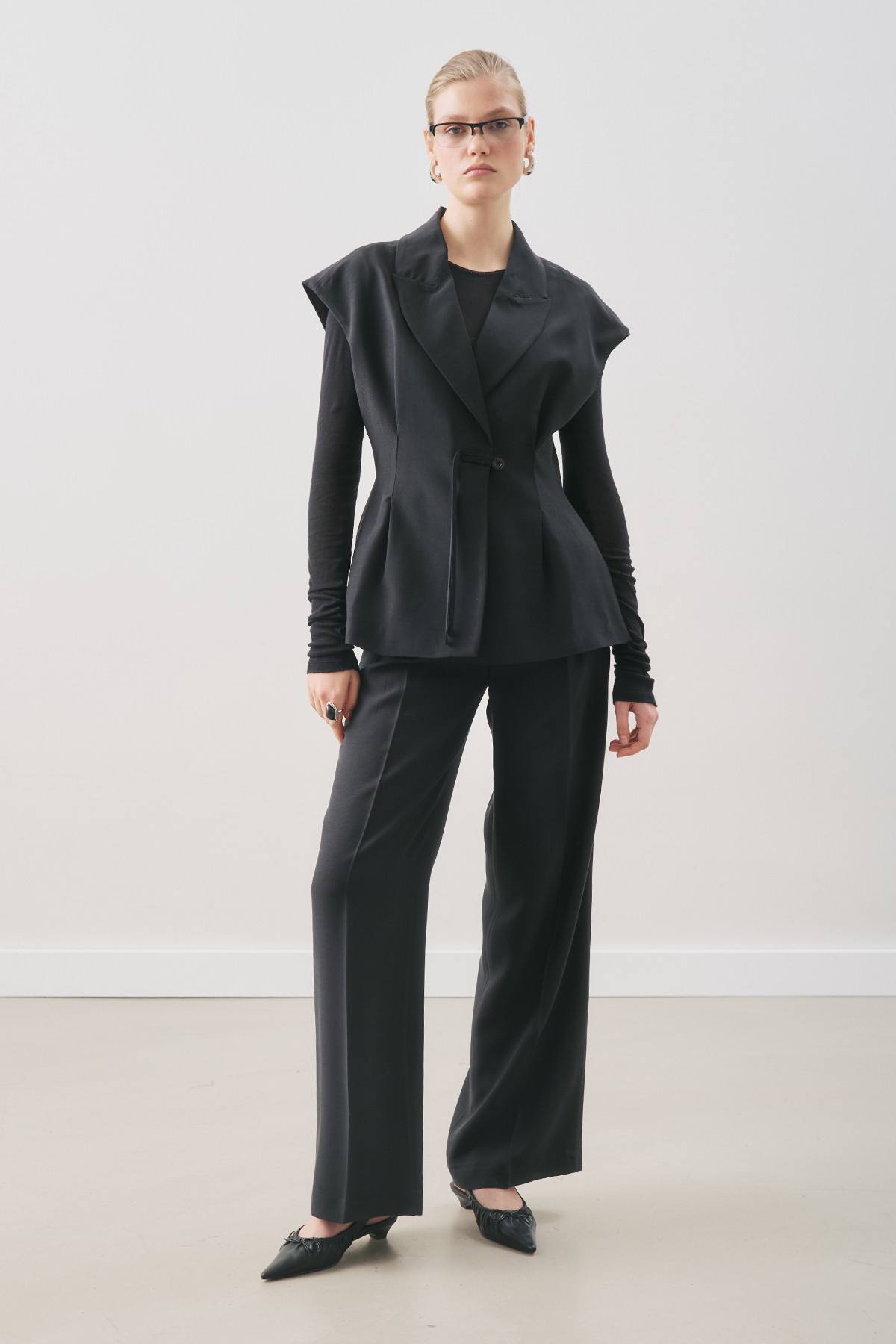 Normal kalıp,yüksek bel,pileli,tam boy,fermuarlı,düğmeli.Ana Kumaş %64 Tencel,%36 Viskon