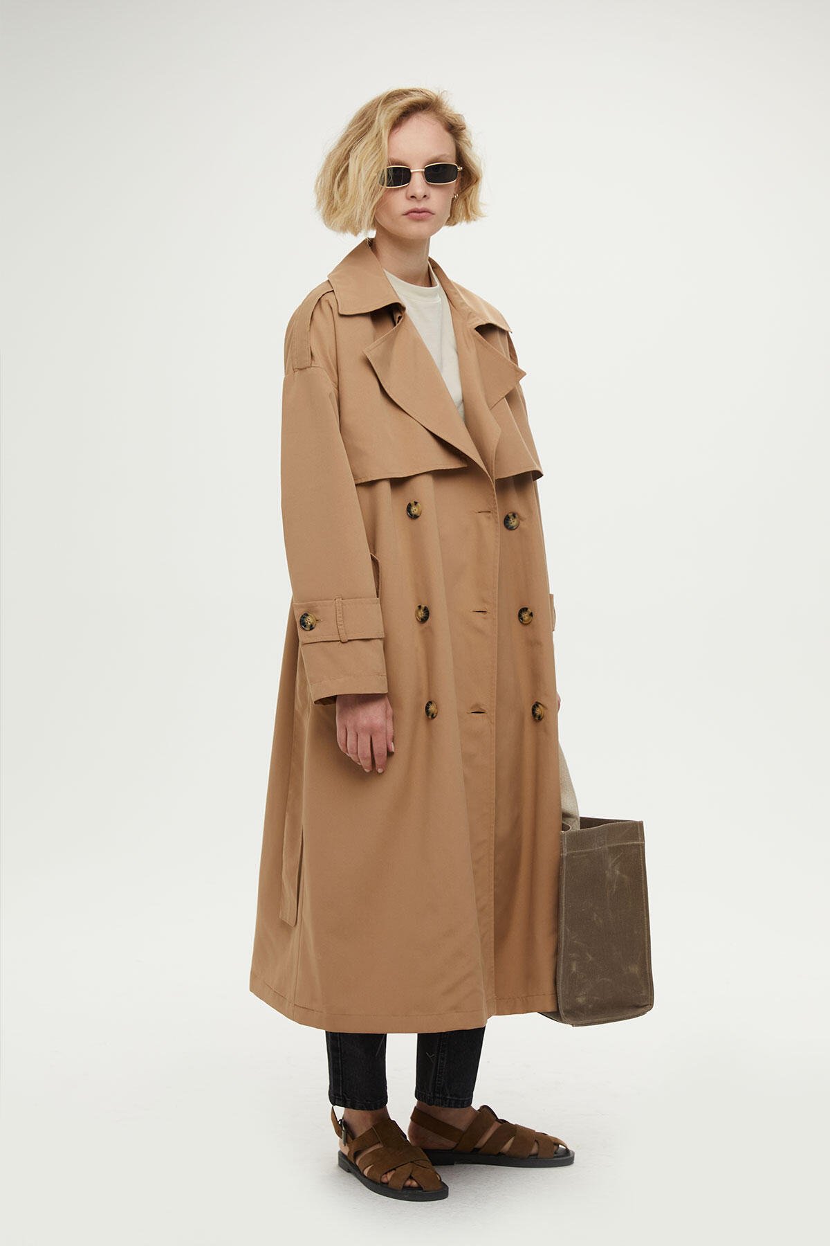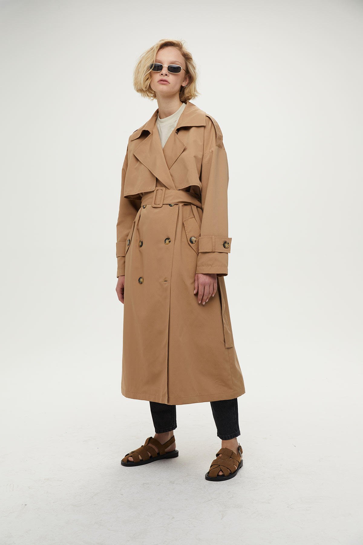 DÜĞMELİ OVERSIZE TRENÇKOT CAMEL