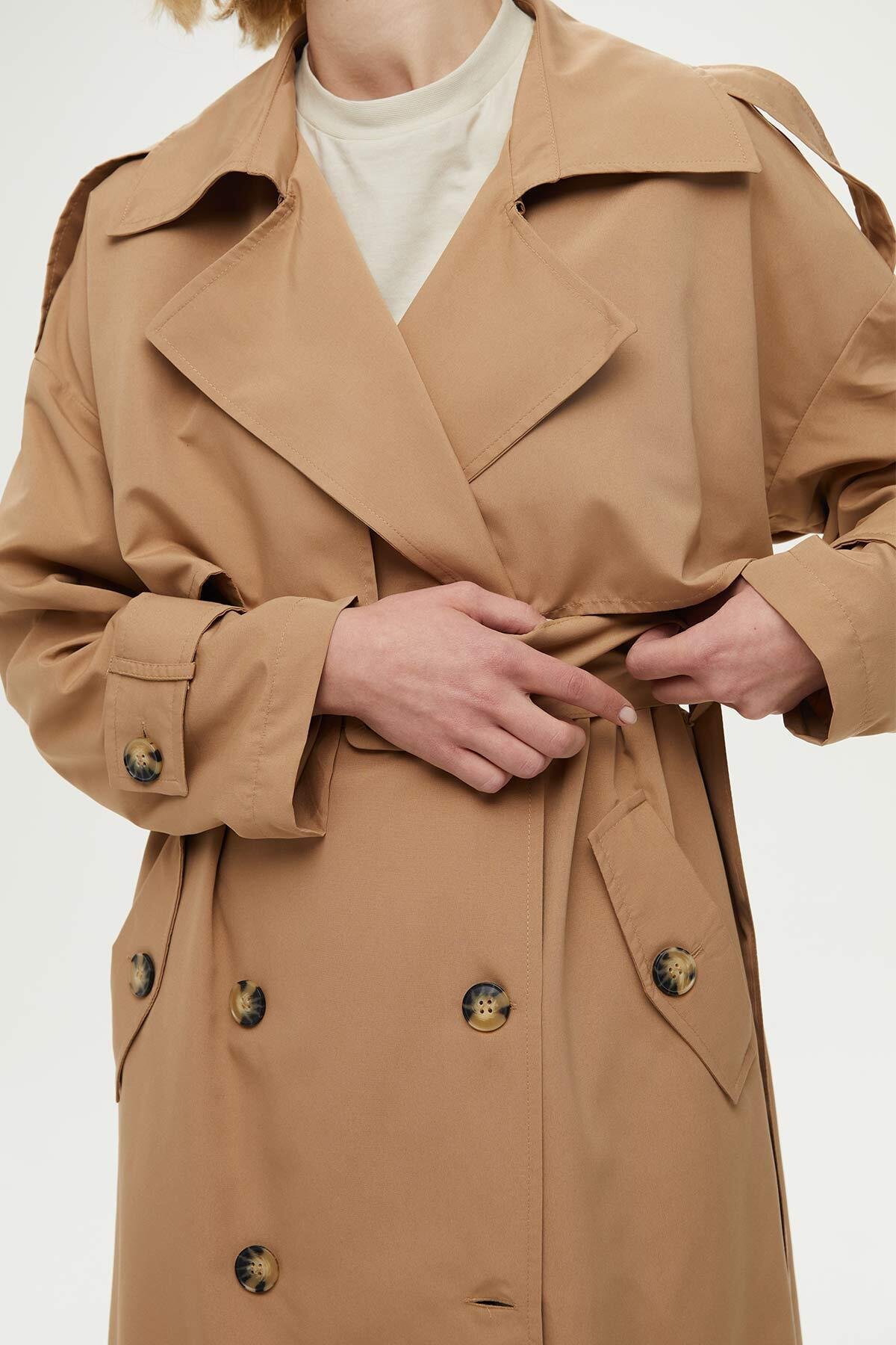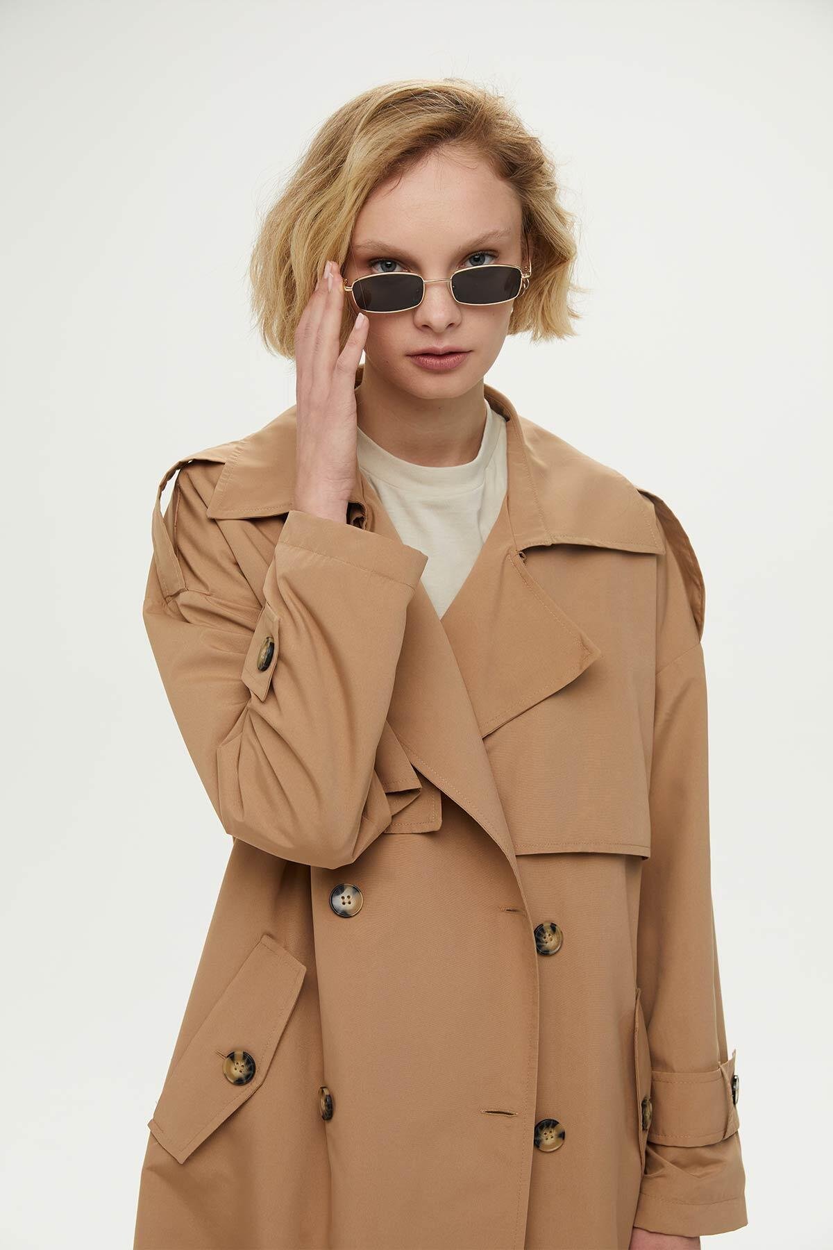 DÜĞMELİ OVERSIZE TRENÇKOT CAMEL ÖZELLİKLERİ