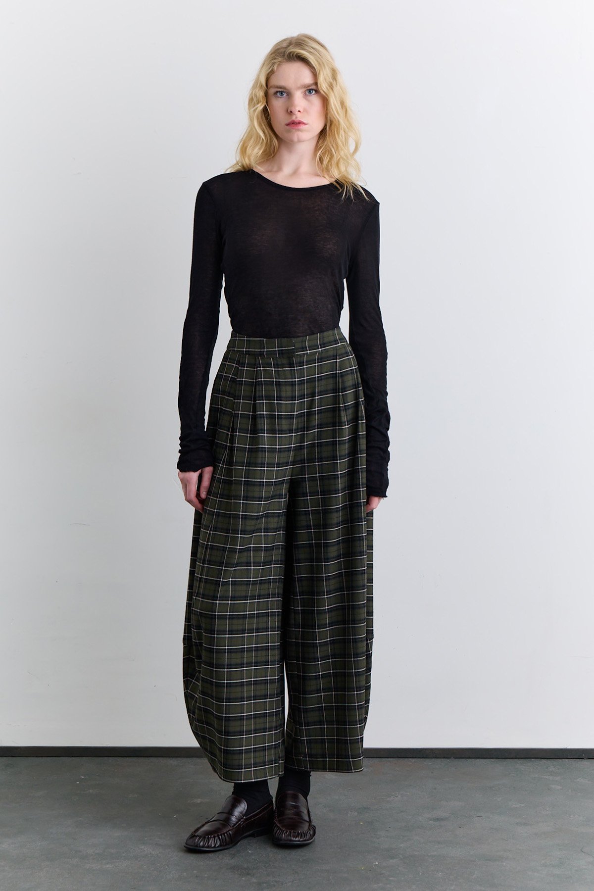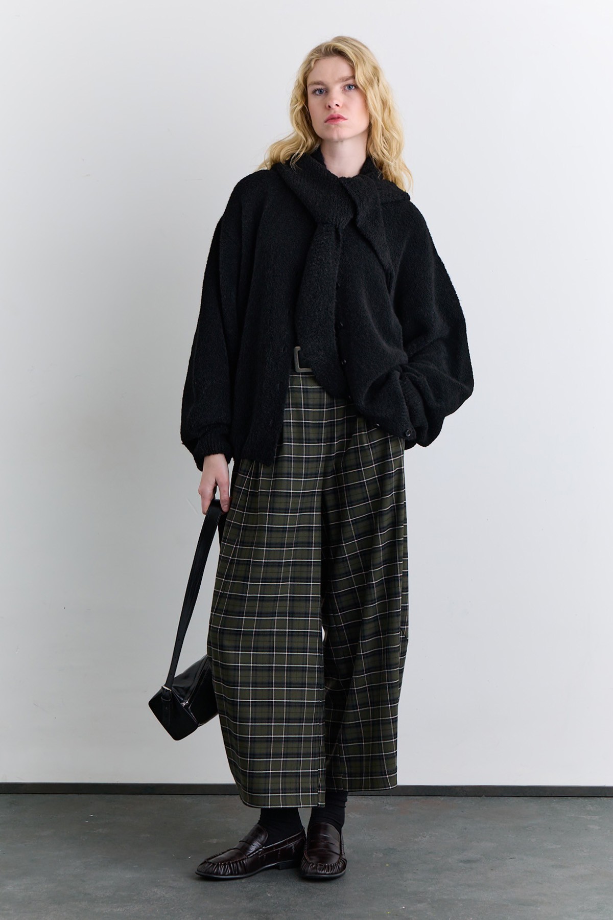 Balon form, rahat kalıp, yüksek bel, geniş balon formlu, bilek boy. Dokuma.